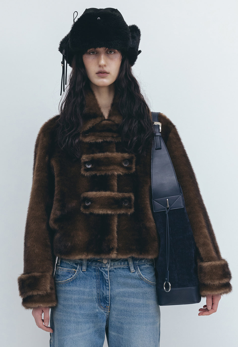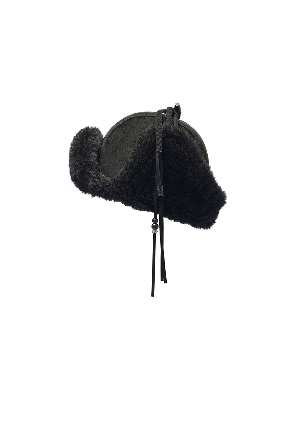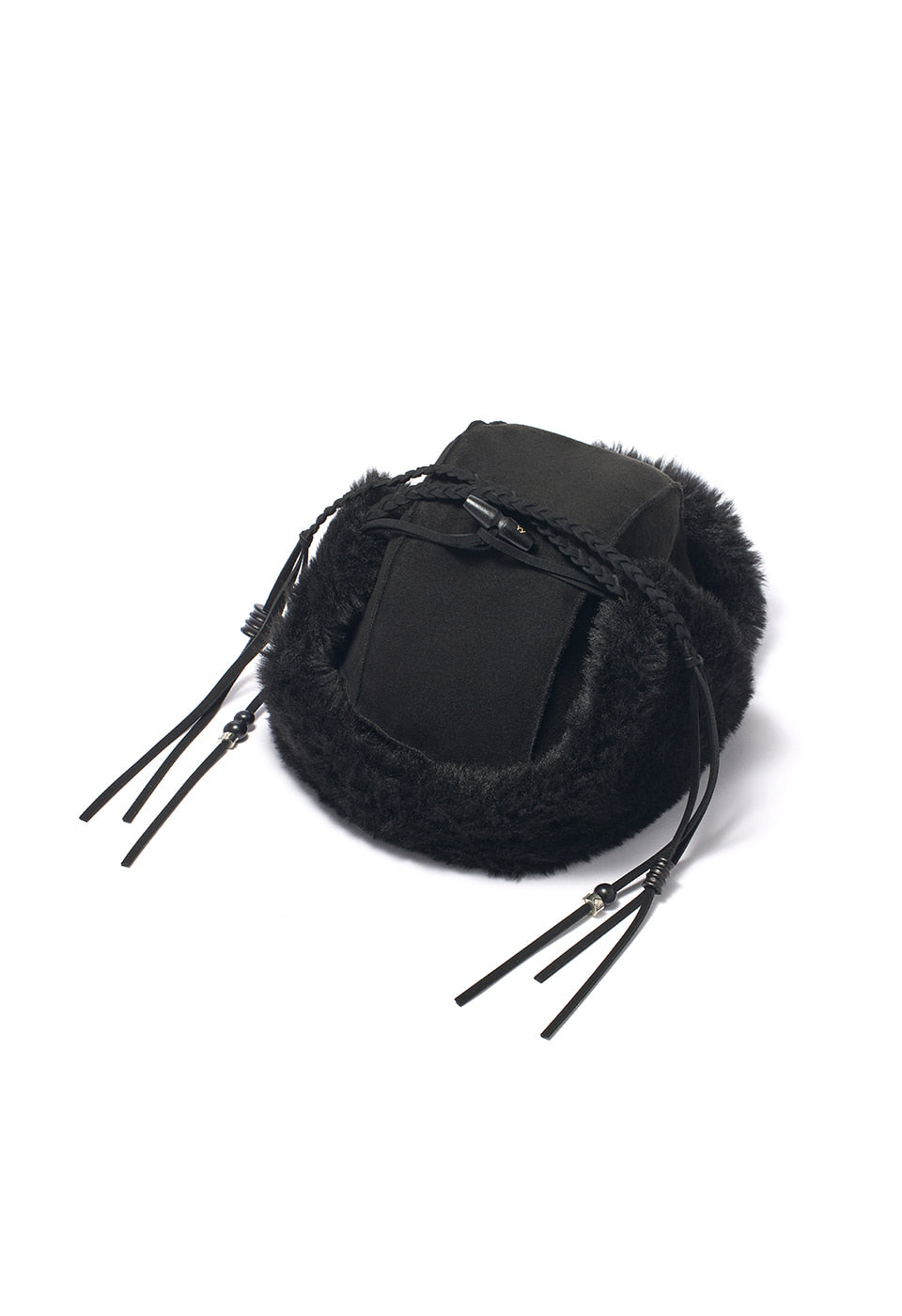 OPEN YY BRAIDED SHEARLING TRAPPER, BLACK