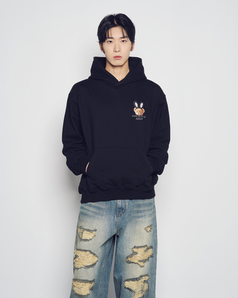 ADLV RABBIT BEAR DOLL LOGO HOODIE BLACK