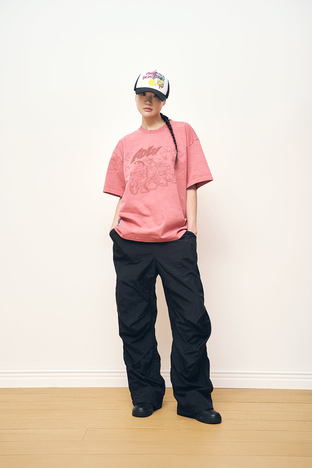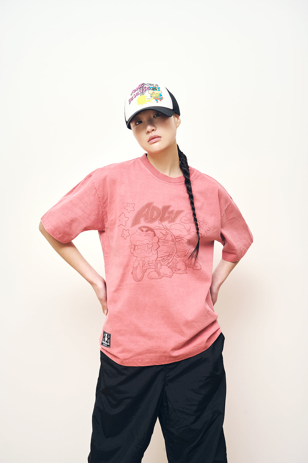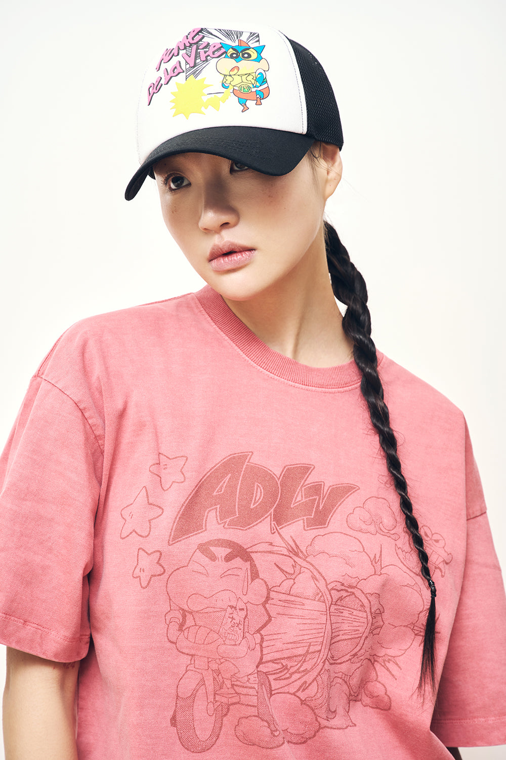 ADLV SHINCHAN CARTOON PIGMENT SHORT SLEEVE T-SHIRT DARK PINK