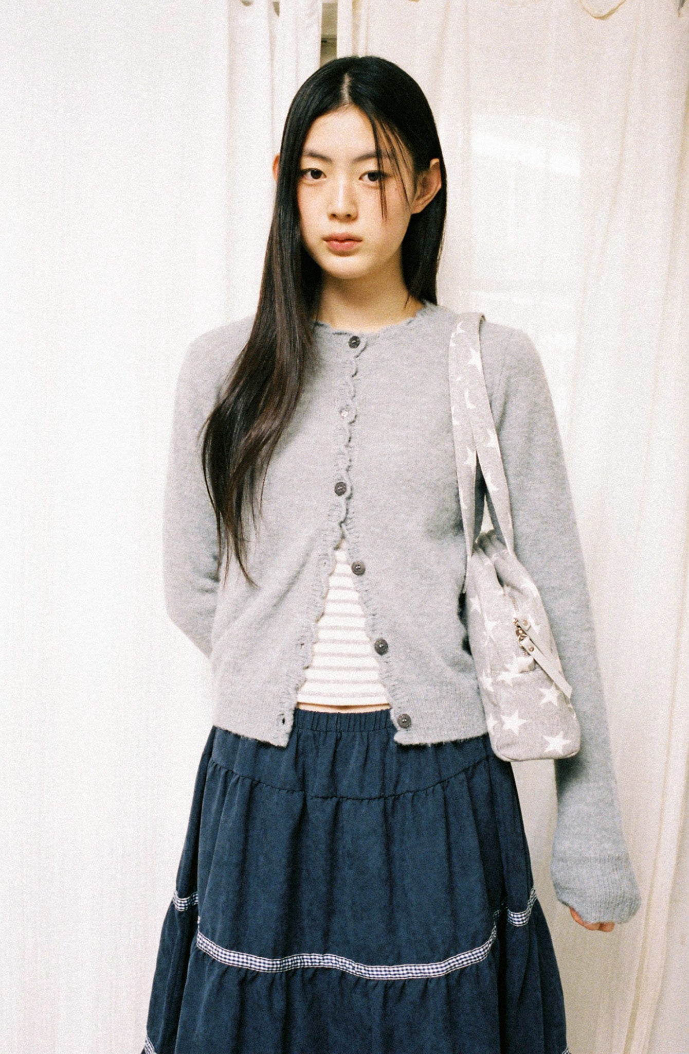 Add SCALLOP ROUND NECK CARDIGAN [LIGHT GREY] to the cart