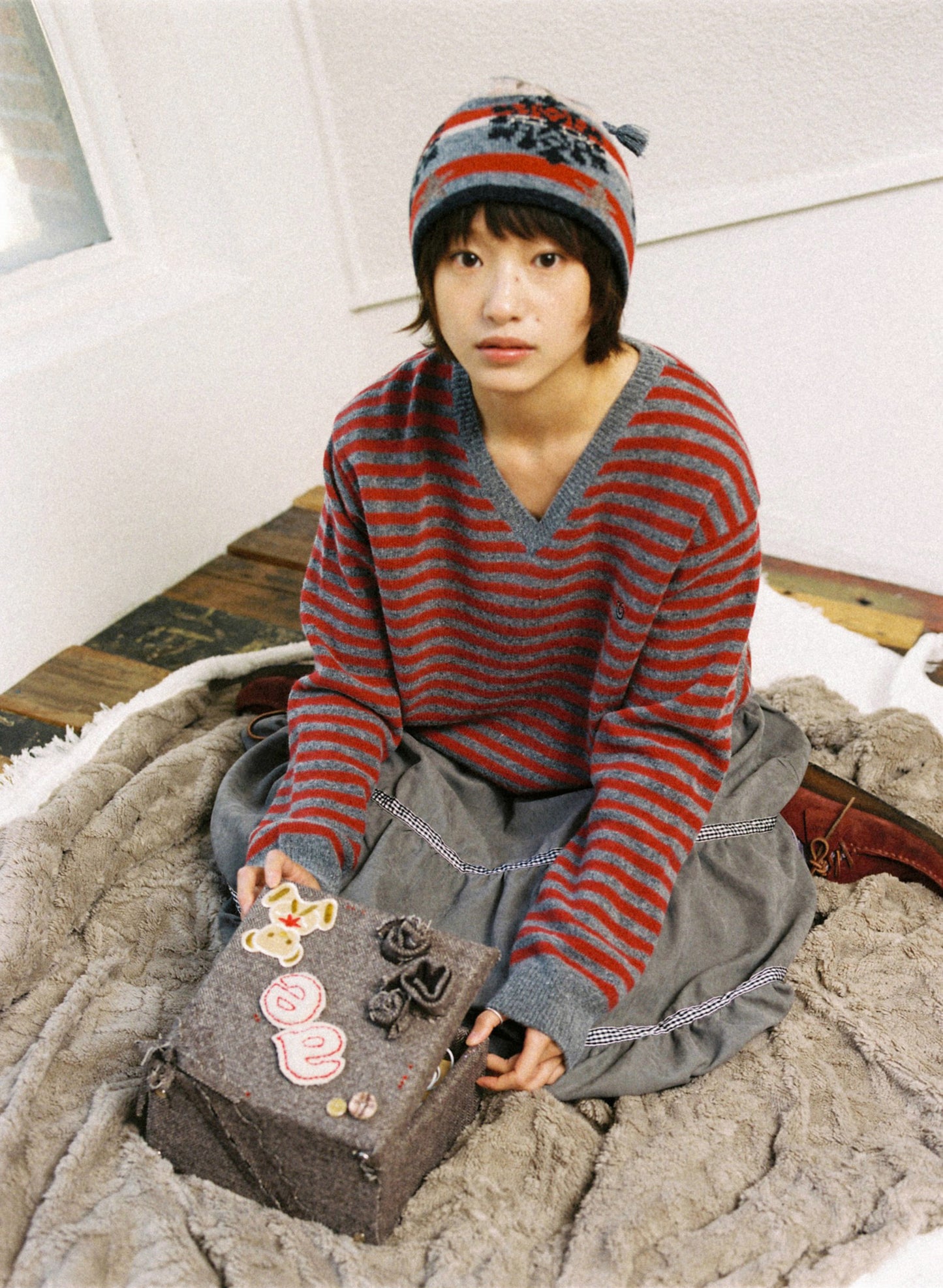 Add STRIPE V-NECK KNIT PULLOVER [GREY] to the cart