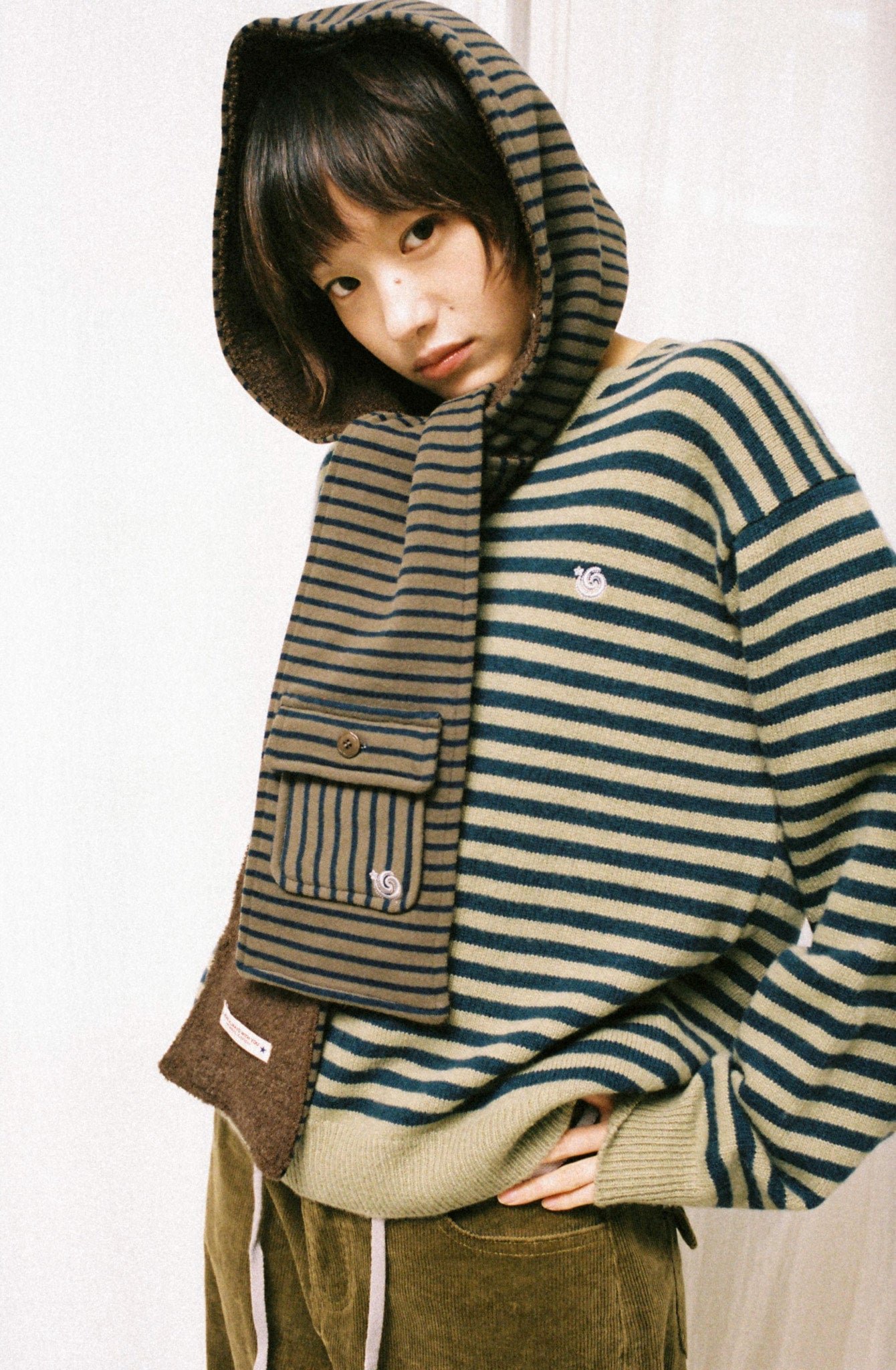 Add STRIPE V-NECK KNIT PULLOVER [KHAKI] to the cart
