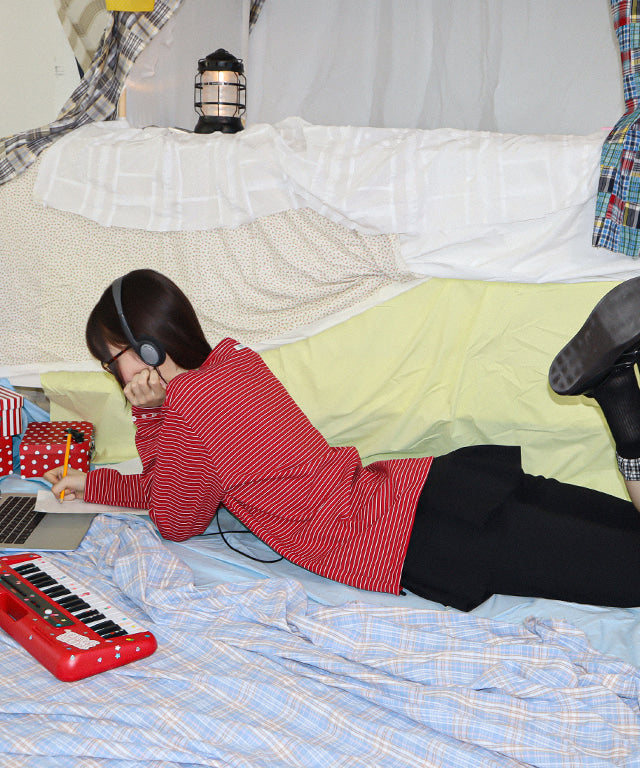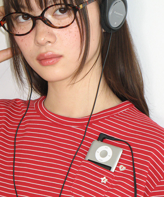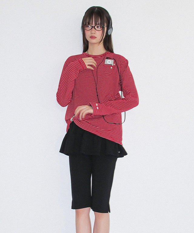 RONRON BUTTON MINI POCKET STRIPE LONG SLEEVE RED