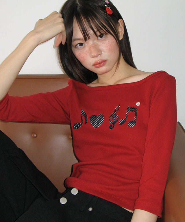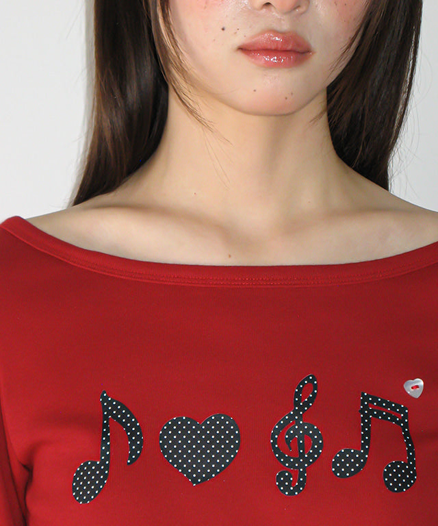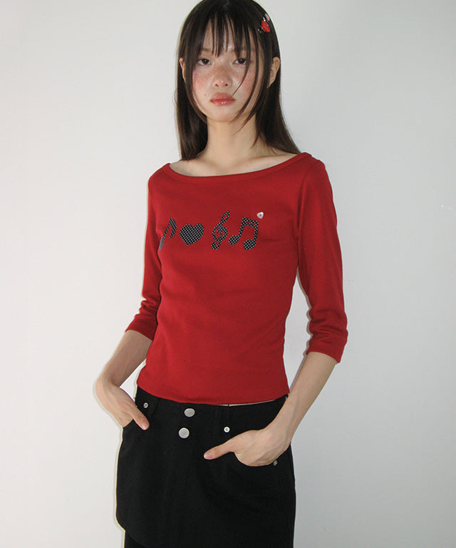 RONRON EART MUSIC NOTE SLIM FIT QUARTER SLEEVE RED