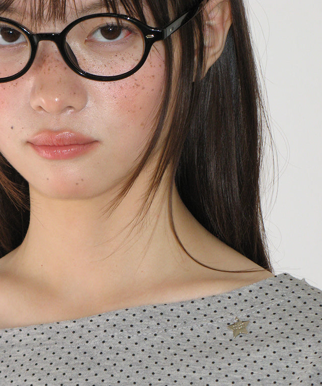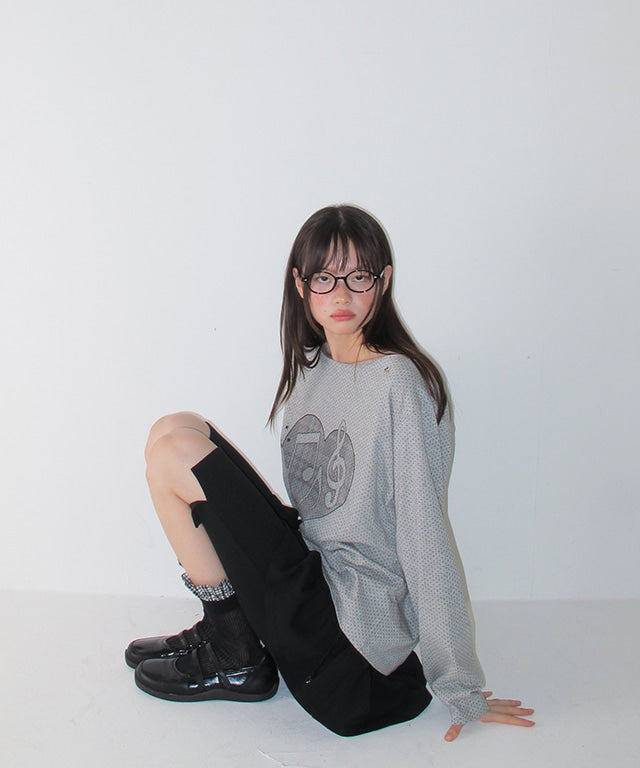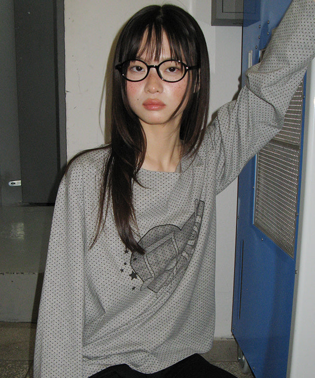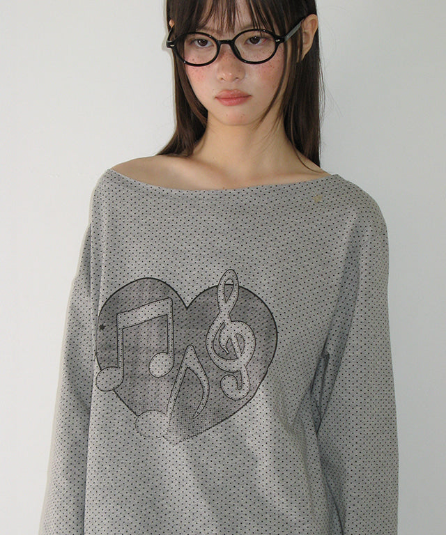 RONRON HEART MELODY OFF SHOULDER LONG SLEEVE GREY DOT