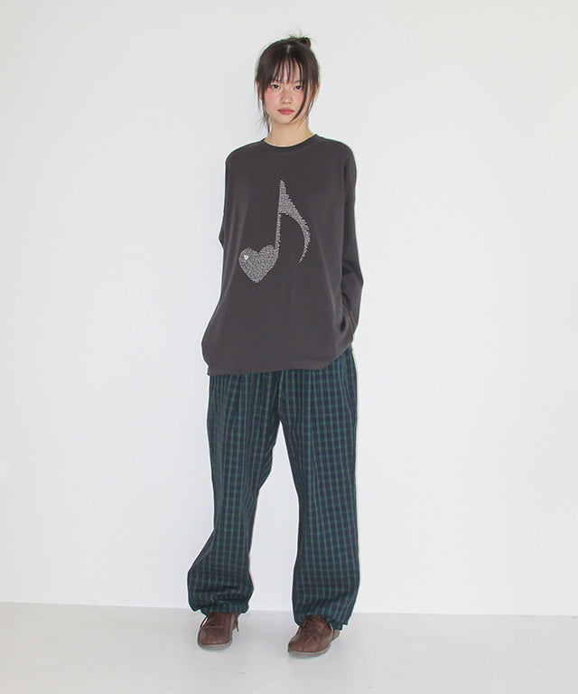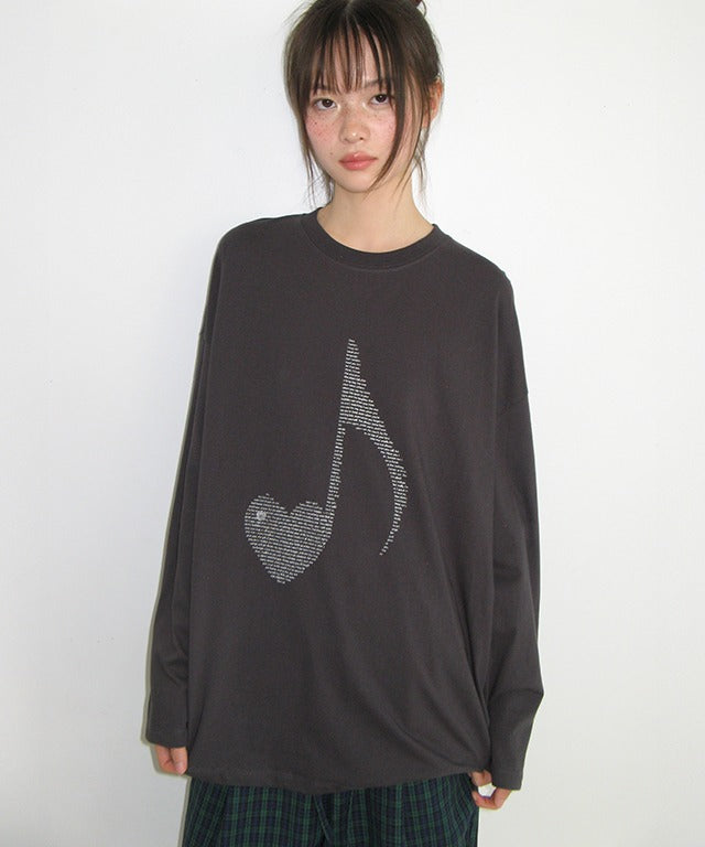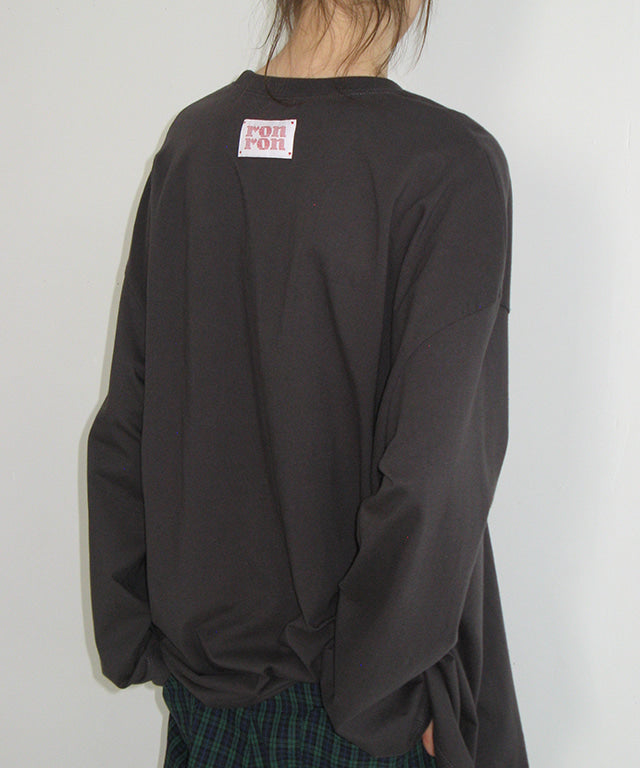 RONRON HEART NOTE TYPE OVER FIT LONG SLEEVE CHARCOAL