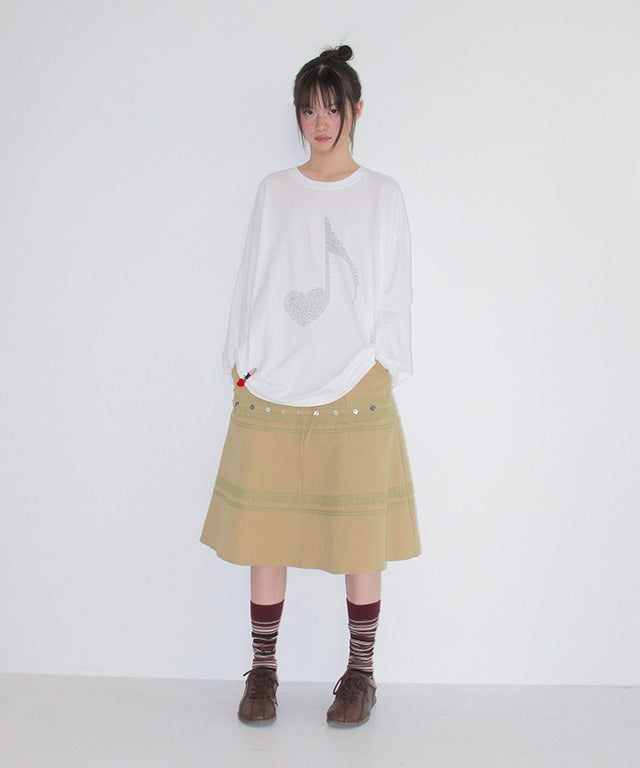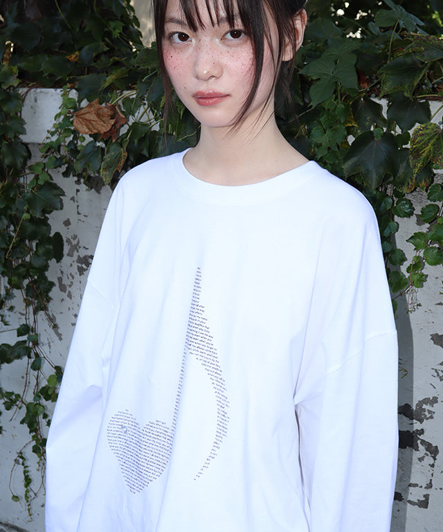 RONRON HEART NOTE TYPE OVER FIT LONG SLEEVE WHITE