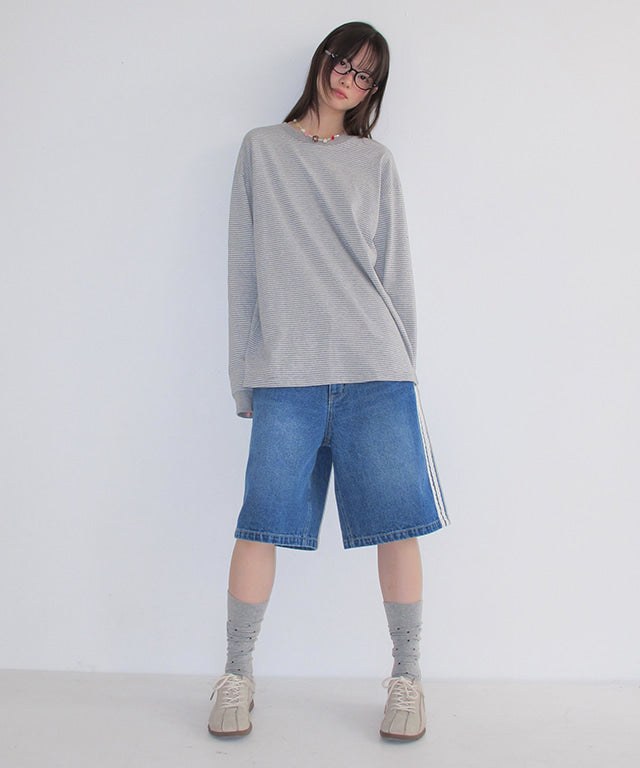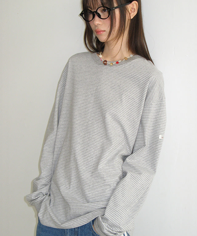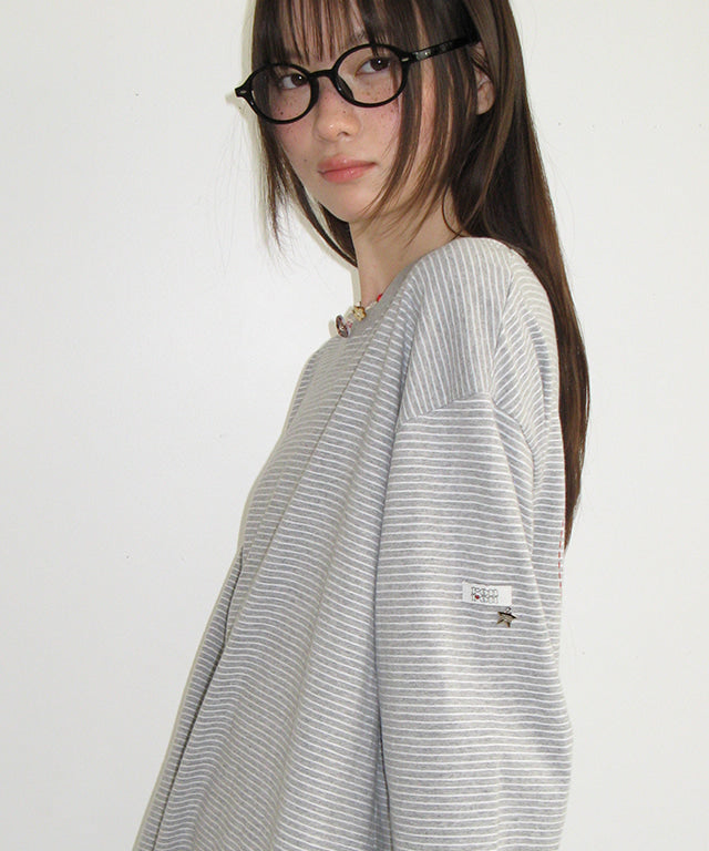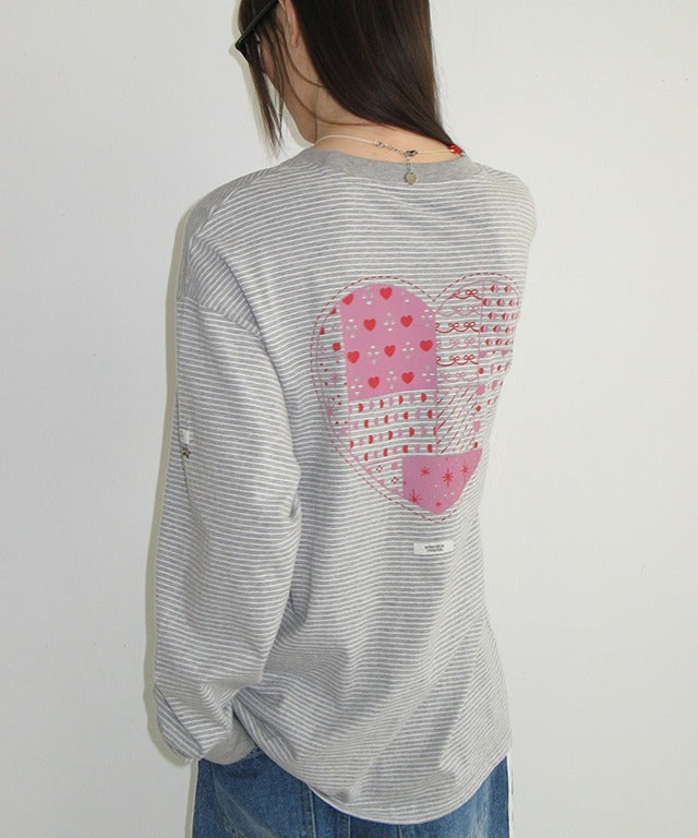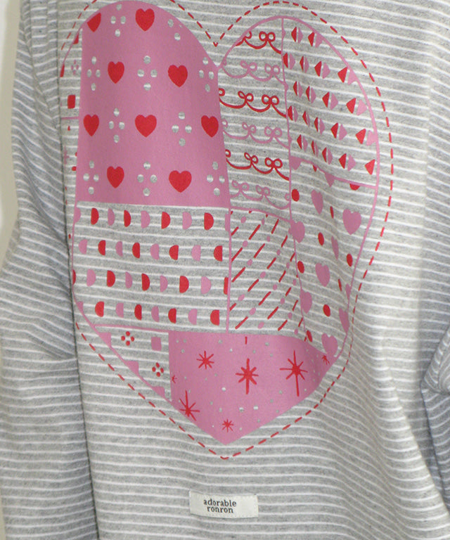 RONRON MULTI PATTERN HEART STRIPE LONG SLEEVE GREY