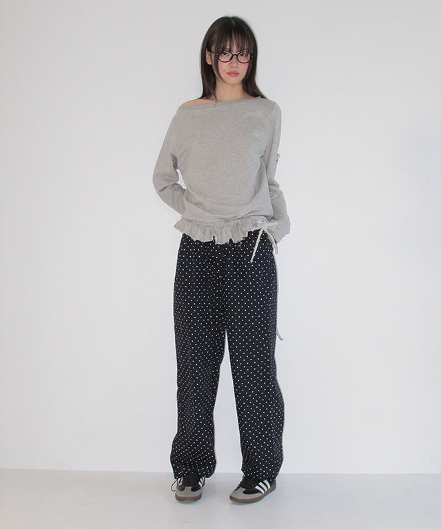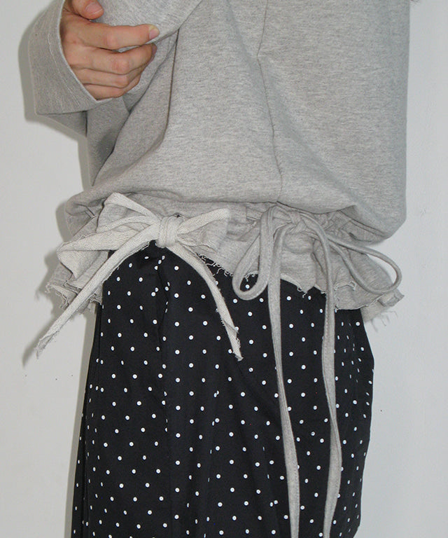RONRON OFF SHOULDER SHIRRING LONG SLEEVE GREY