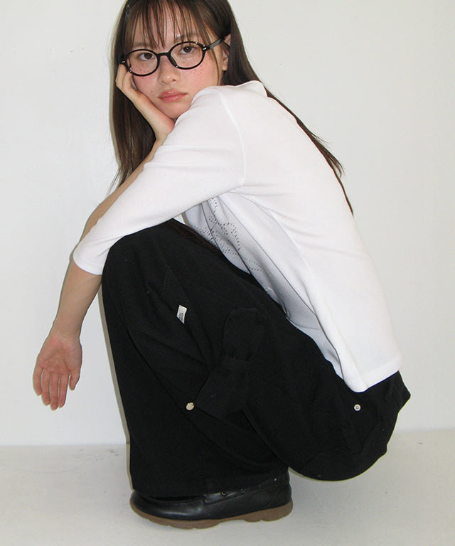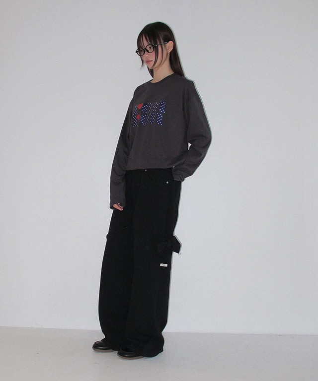 RONRON RIBBON POCKET CARGO DENIM PANTS BLACK