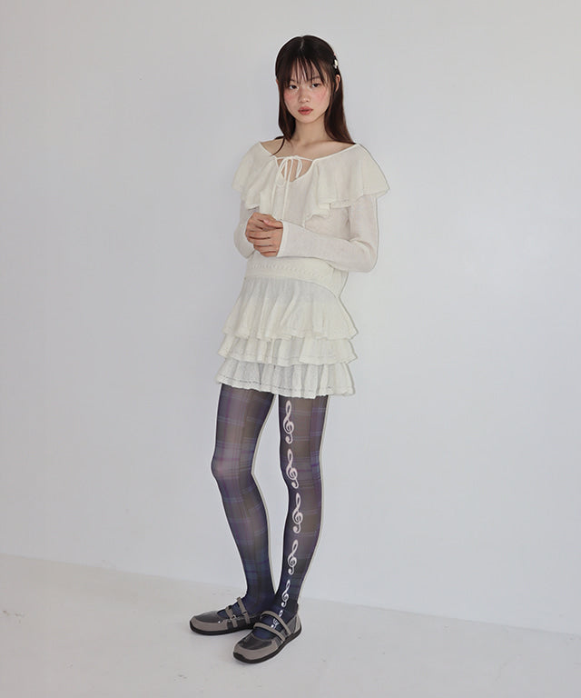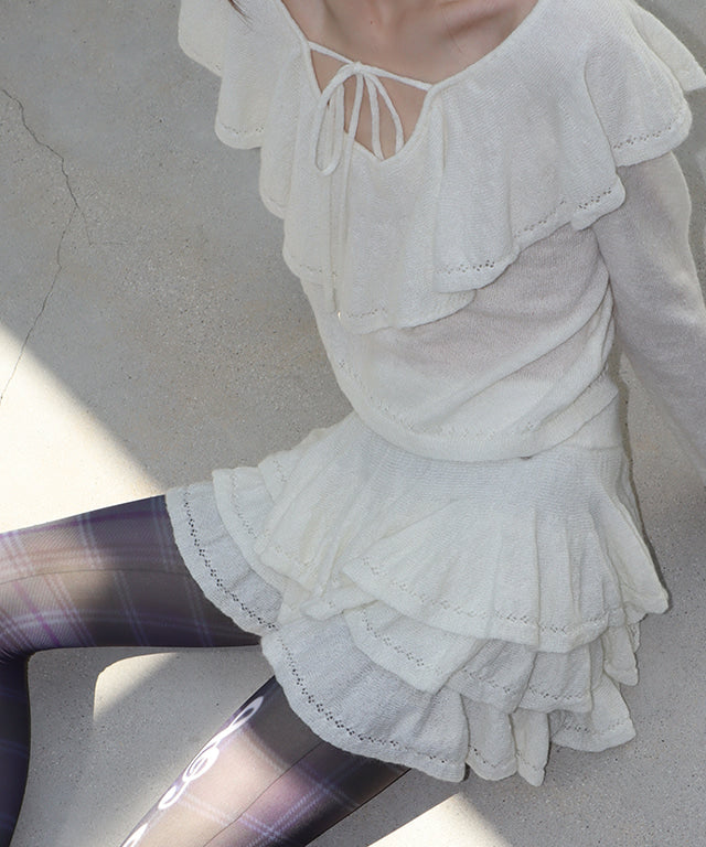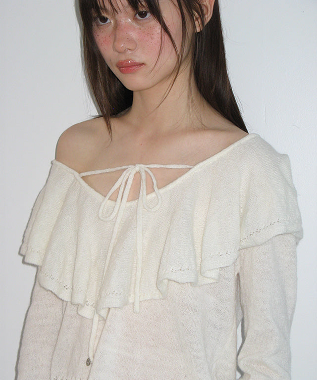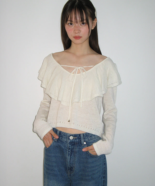 RONRON RUFFLE SKASHI KNIT BLOUSE IVORY