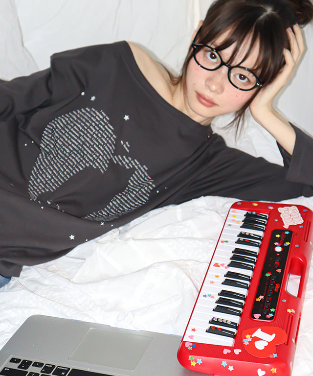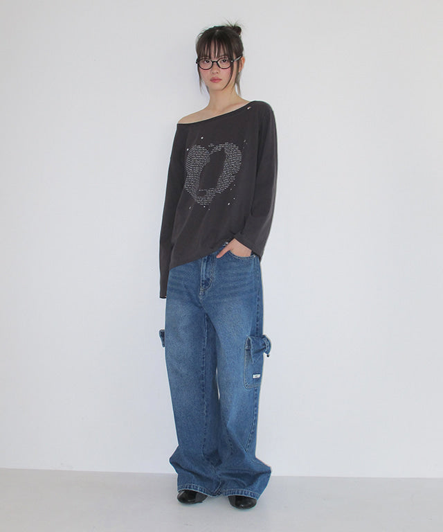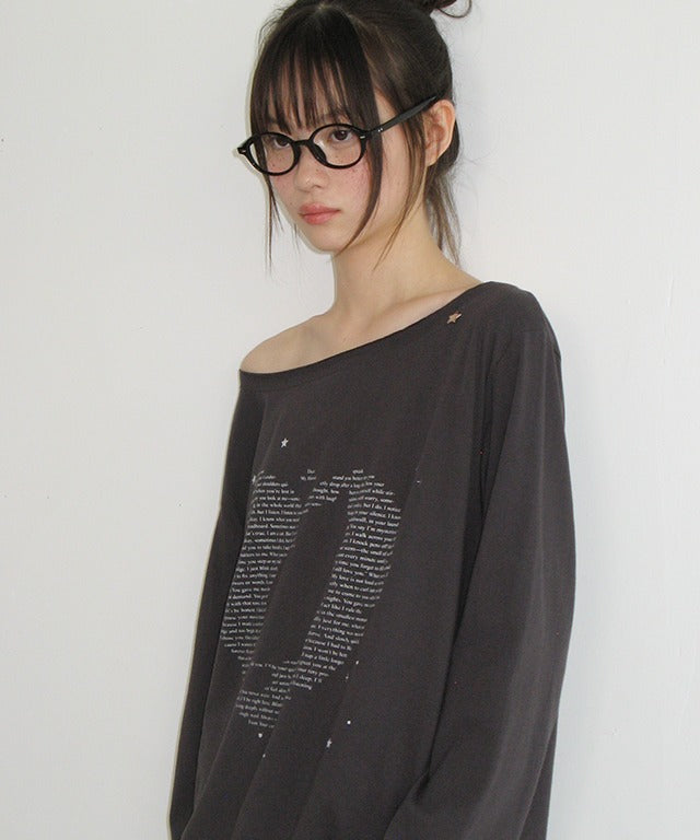 RONRON TYPE CAT OFF SHOULDER LONG SLEEVE CHARCOAL