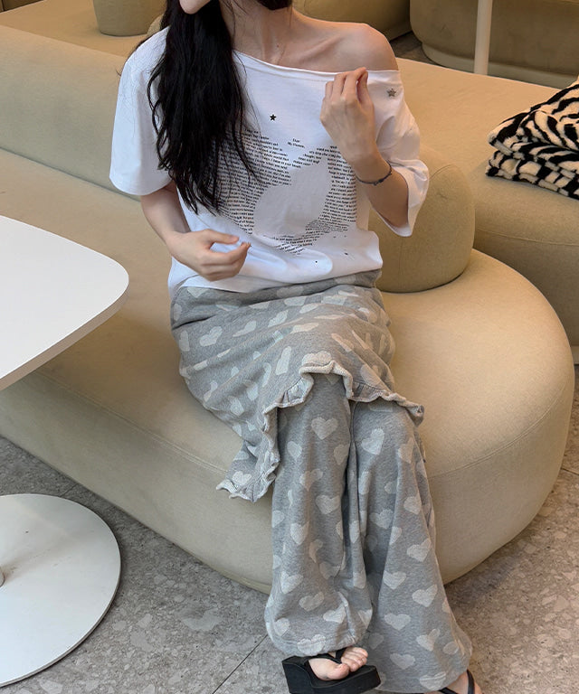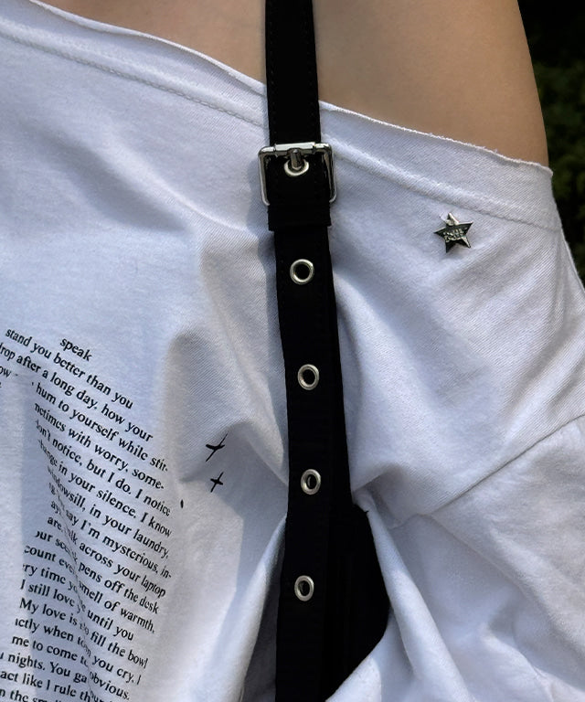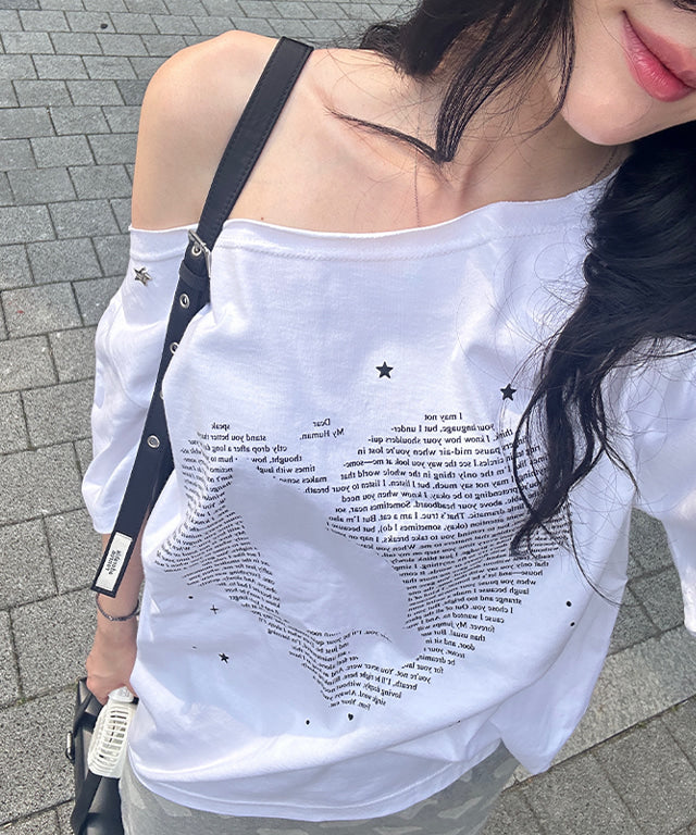 RONRON TYPE CAT OFF SHOULDER T SHIRTS WHITE