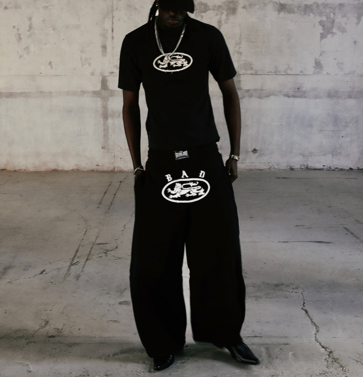 BAD BLOOD Lion Patch 2-Way Curved Jogger - Washed Black