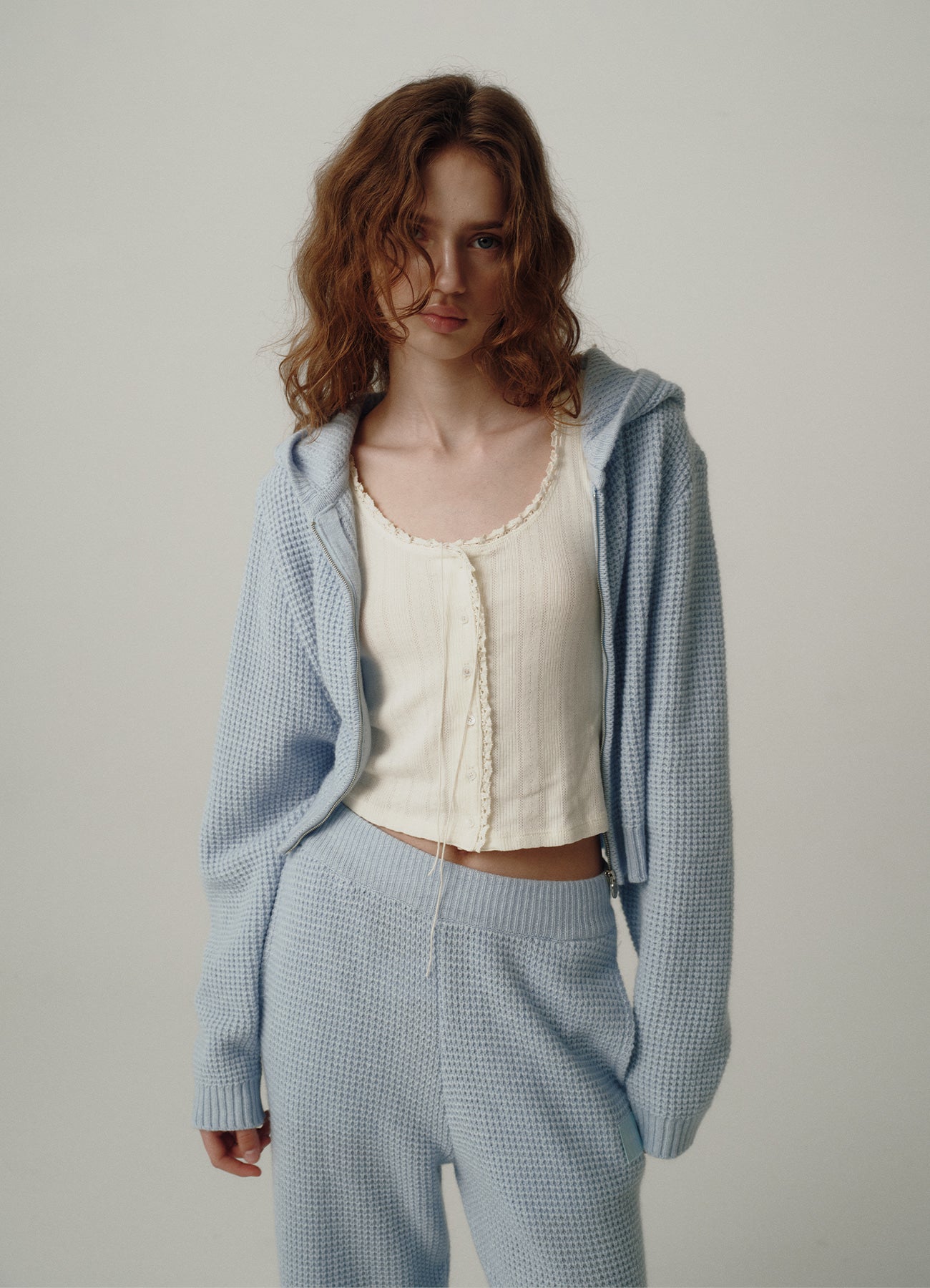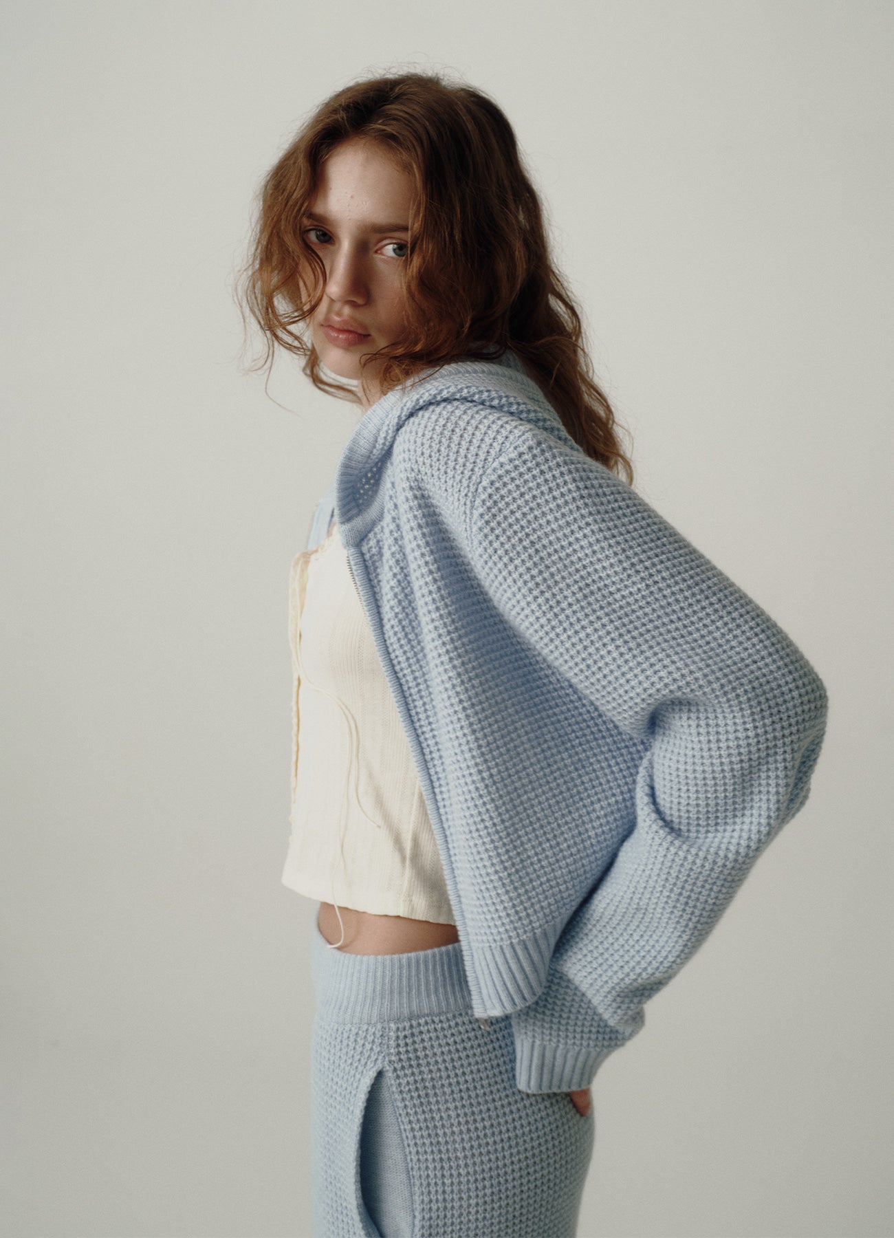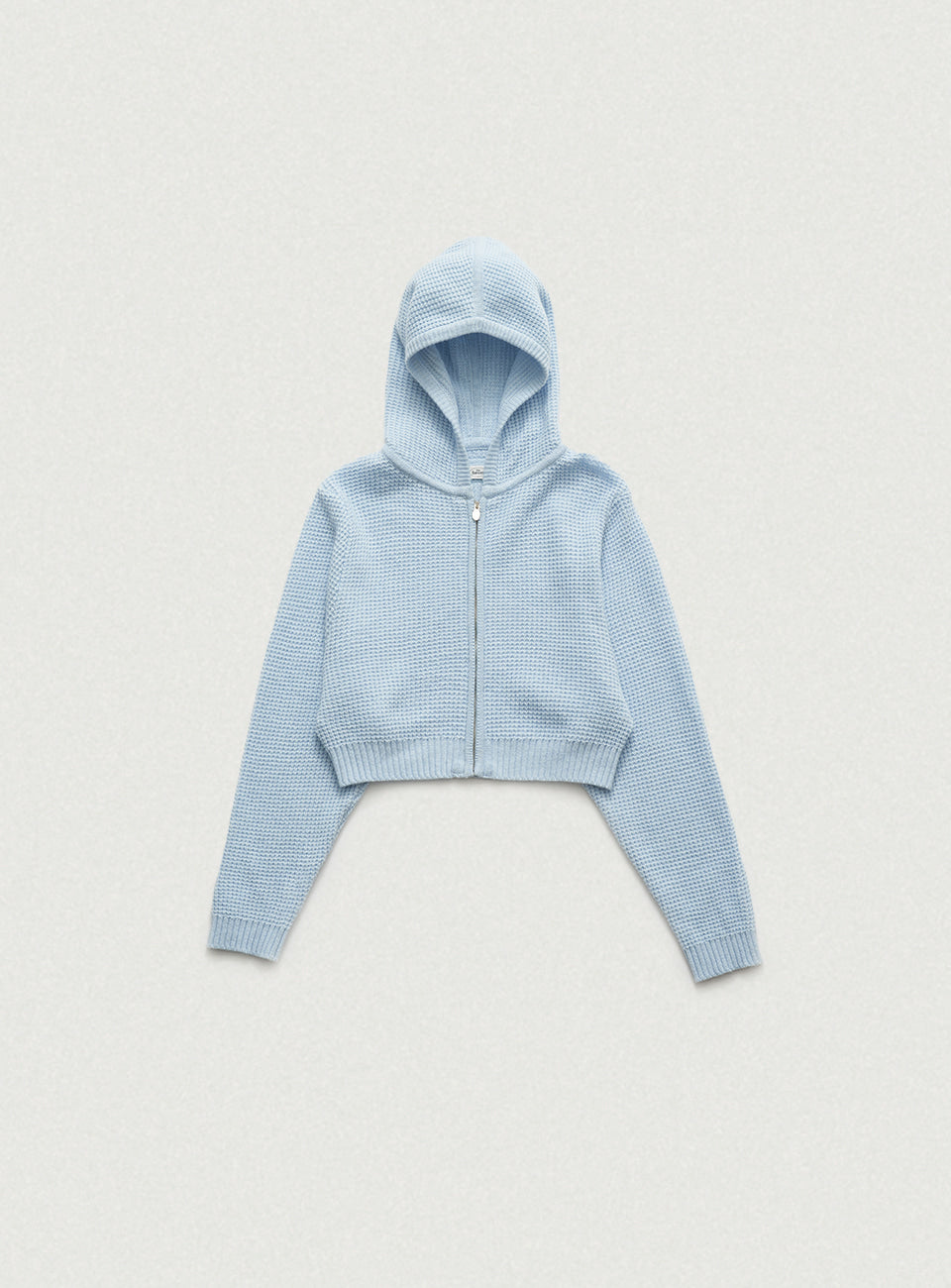 Sky Blue Bella Waffle Knit Zip-up Hoodie