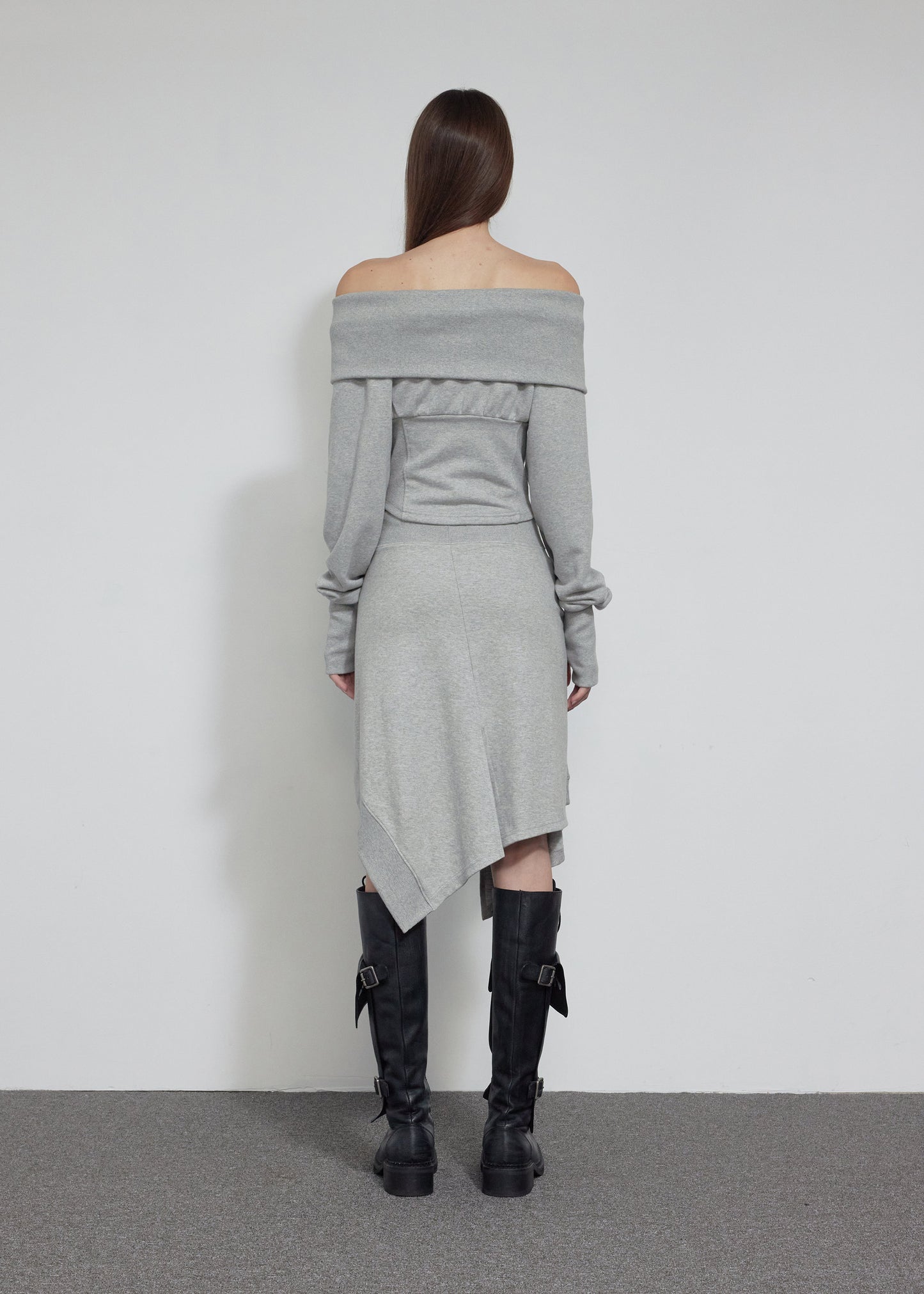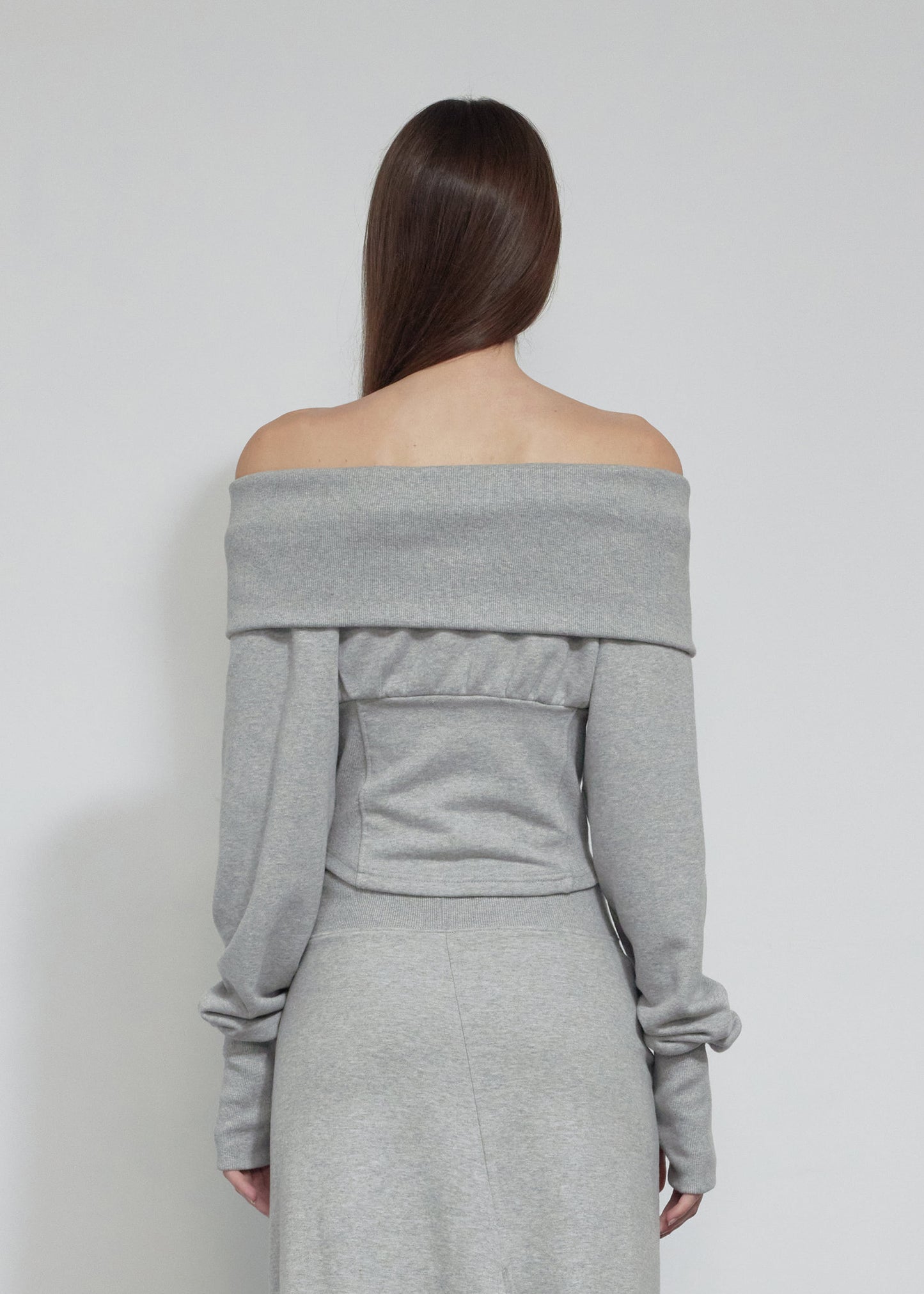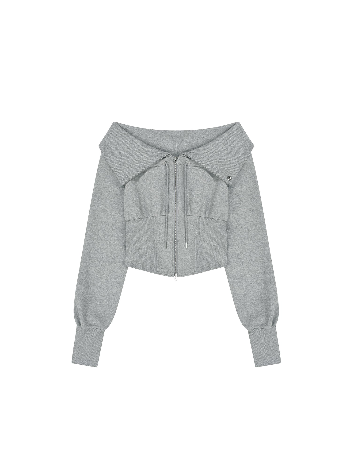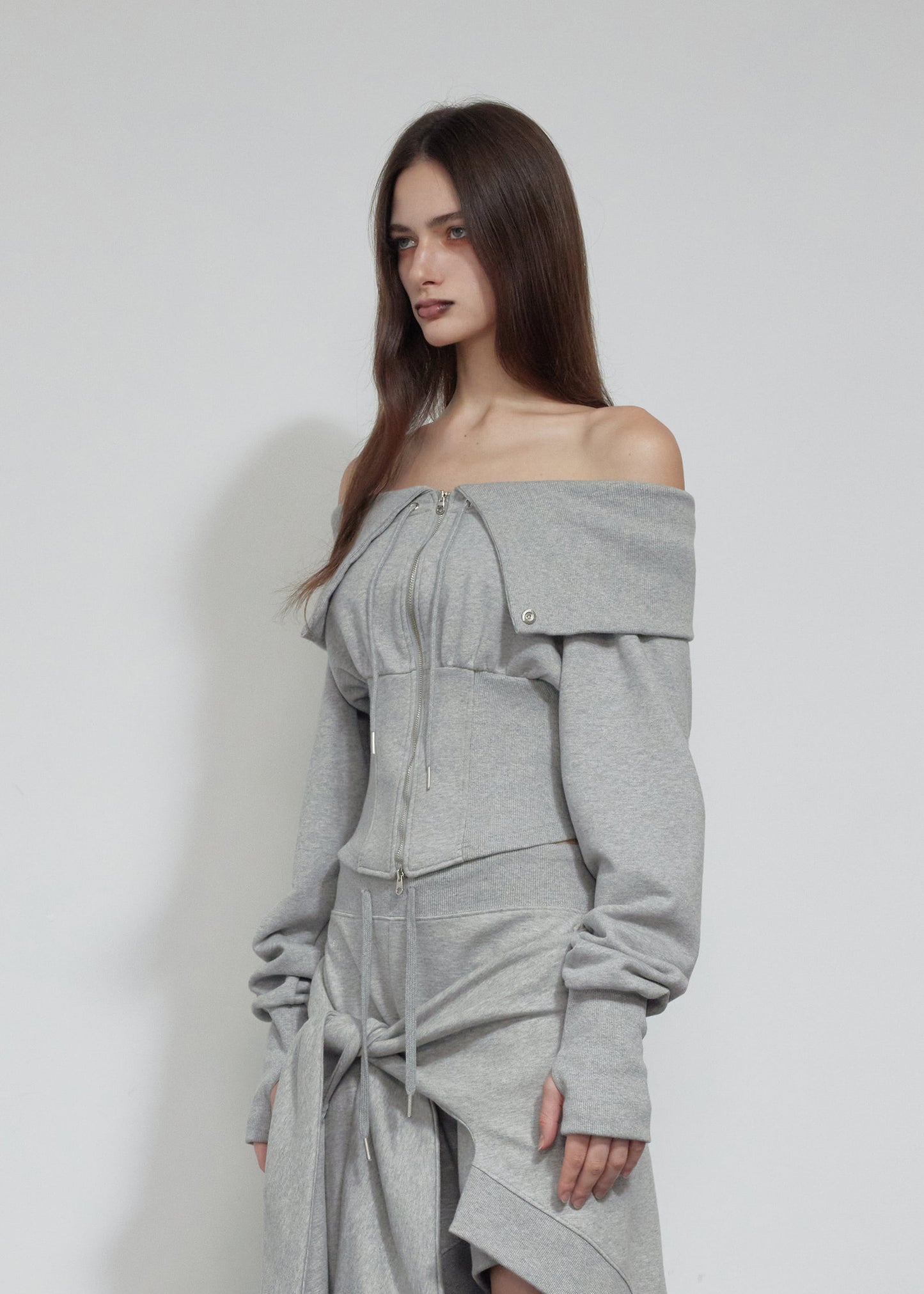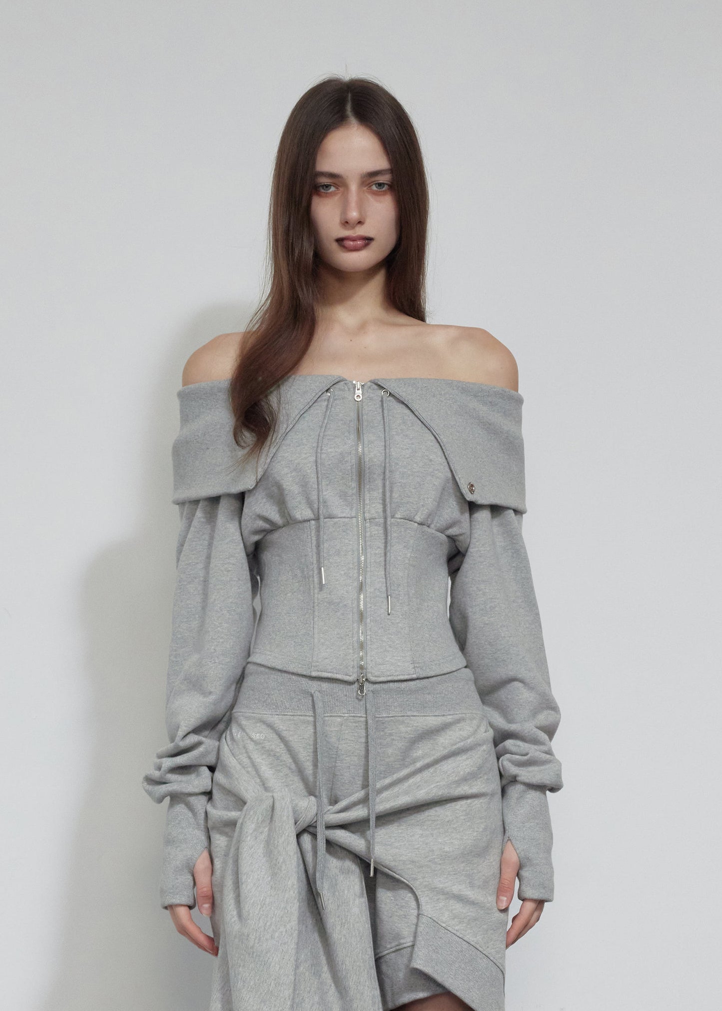 BOHEMSEO CORSET OFF-SHOULDER ZIP-UP, MELANGE GRAY