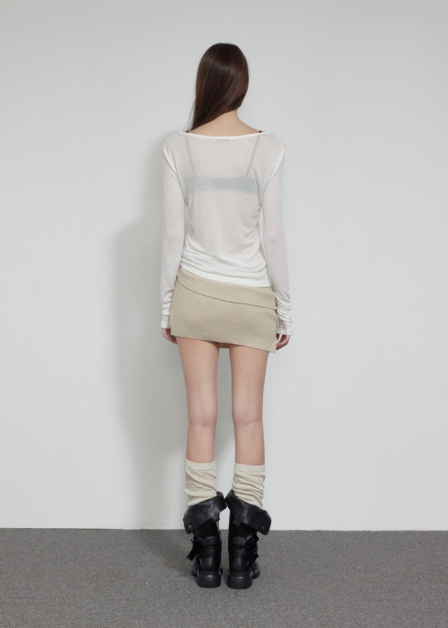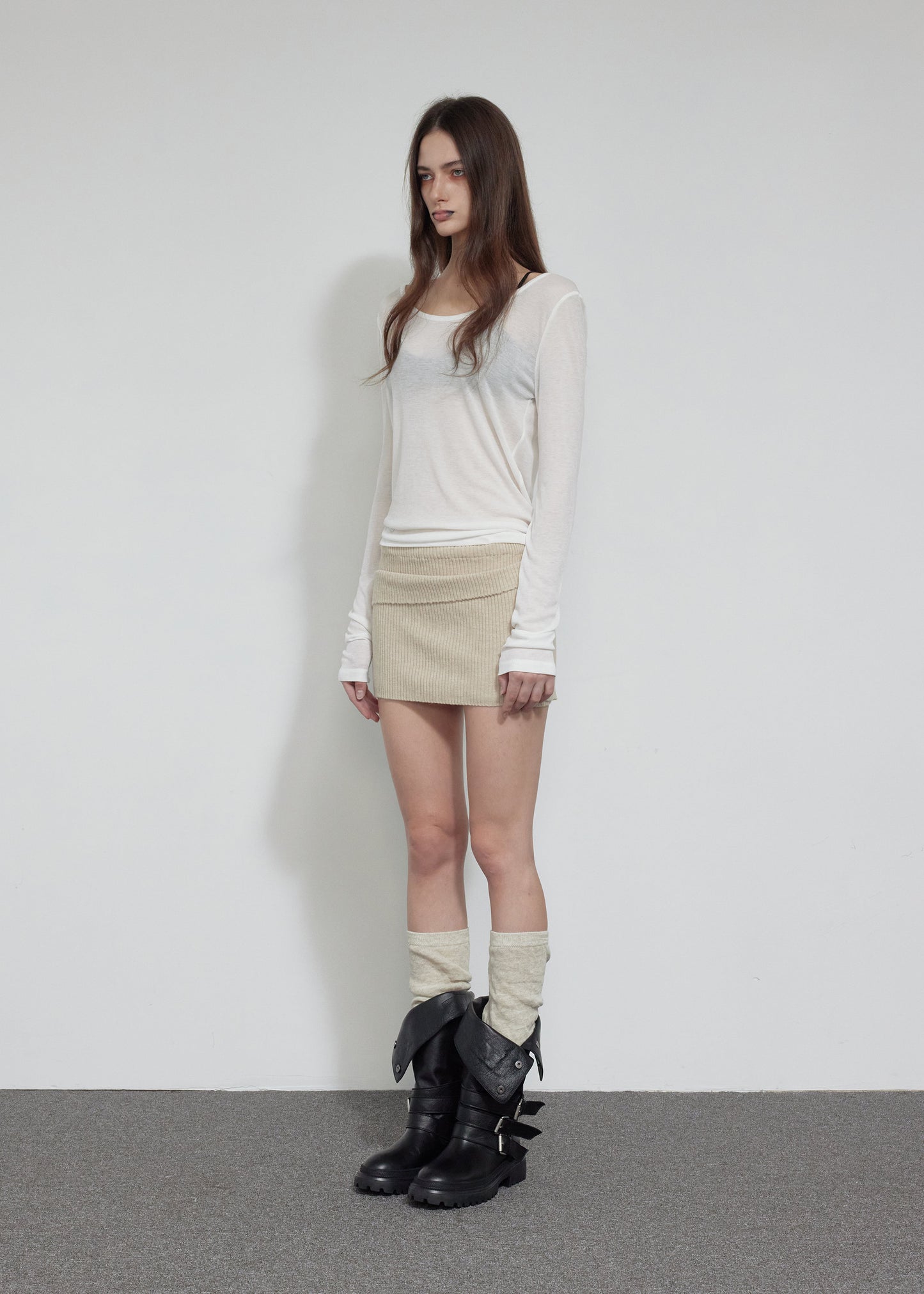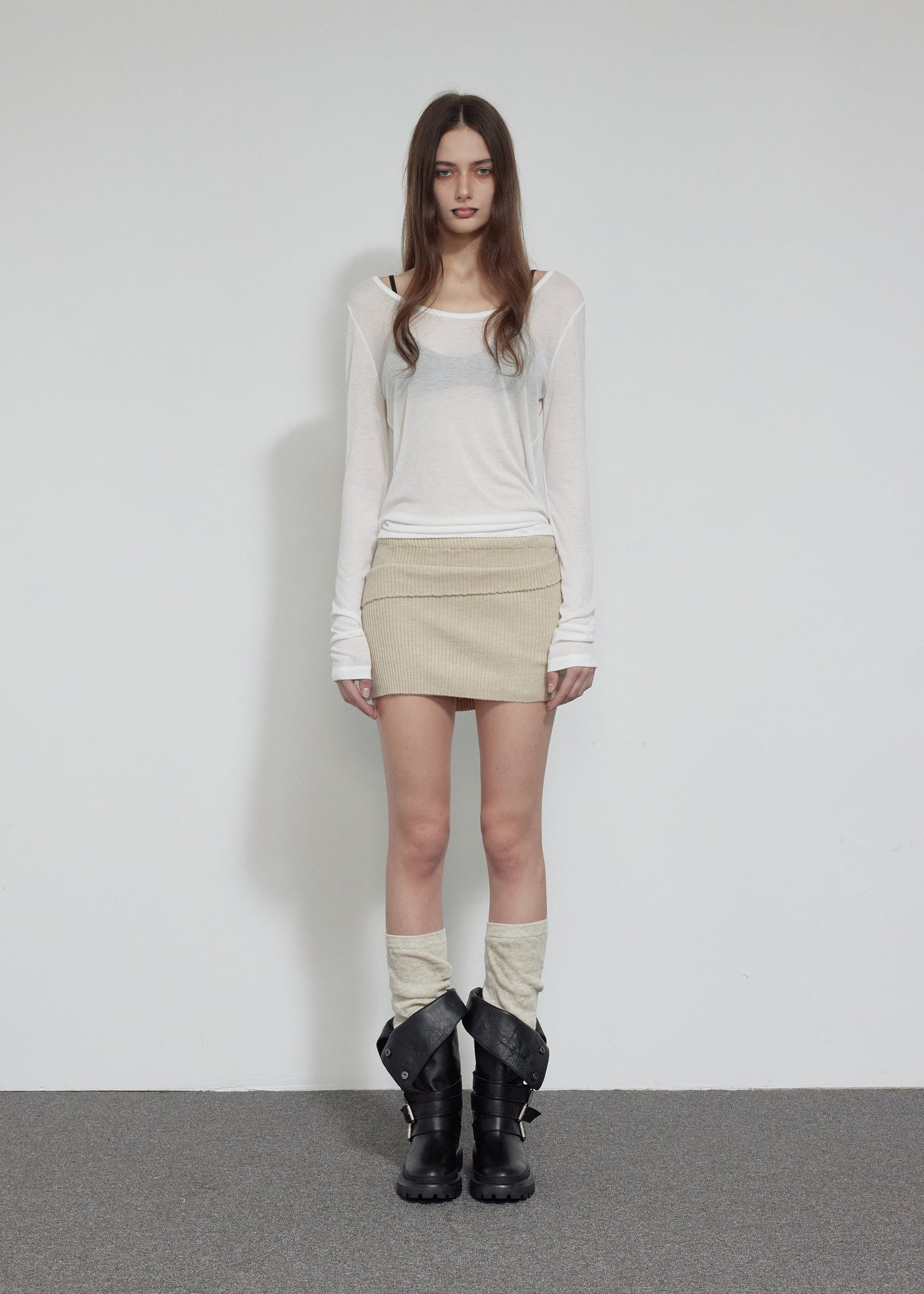 BOHEMSEO LAYERED FOLDED KNIT SKIRT, OATMEAL