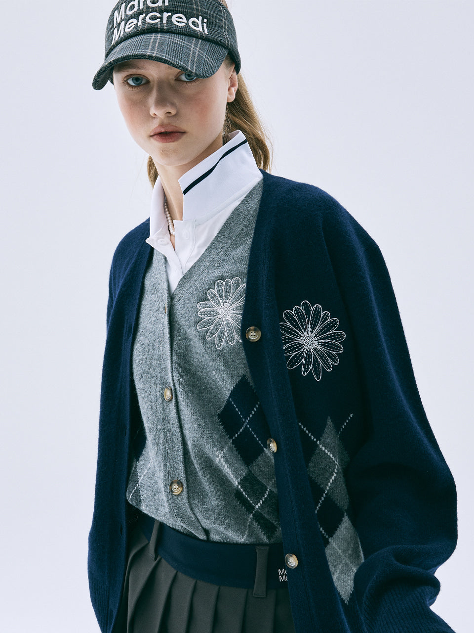 Add MARDI ACTIF CASHMERE BLENDED ARGYLE KNIT CARDIGAN_NAVY IVORY to the cart