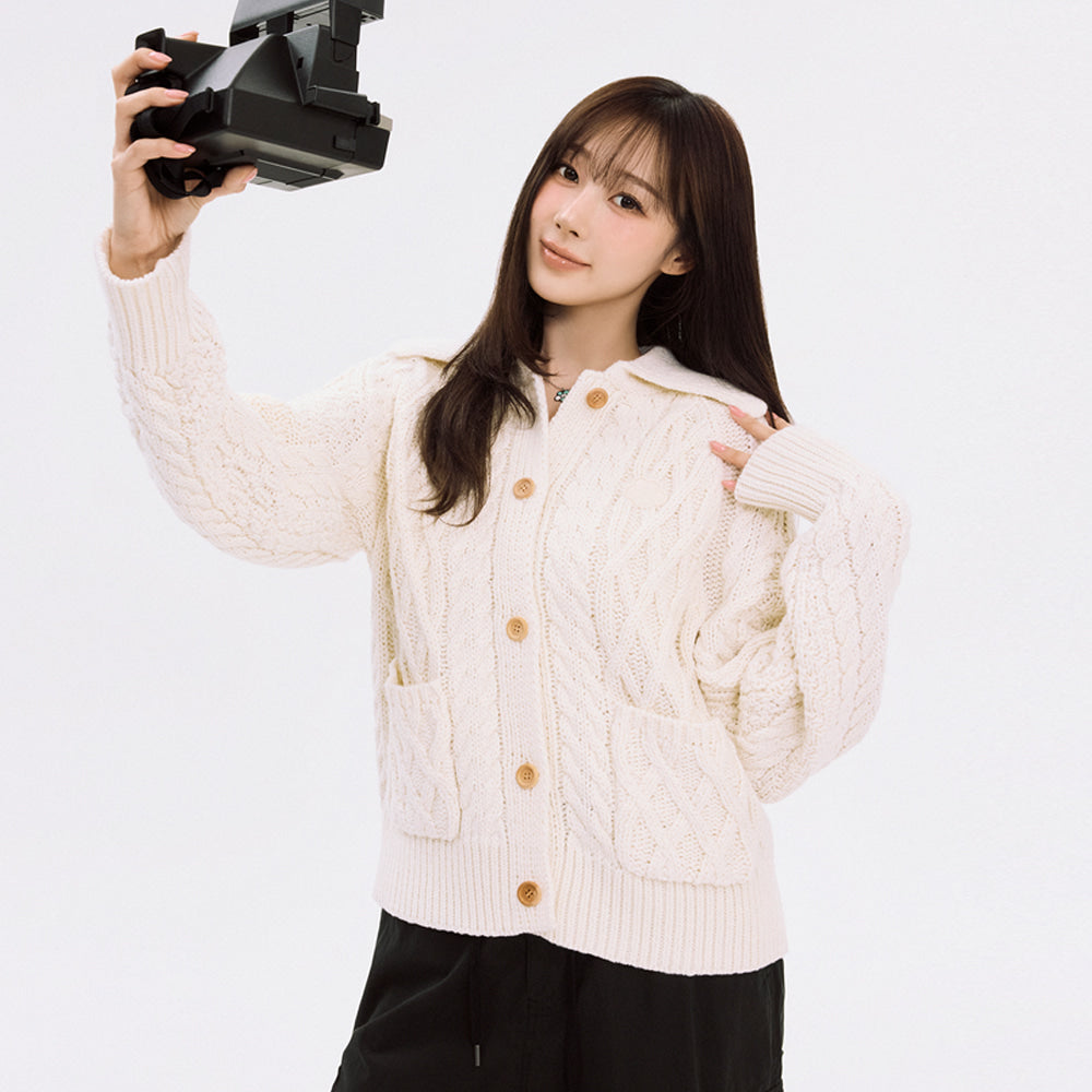 Add LOGO CLIP KNIT CARDIGAN - WHITE to the cart