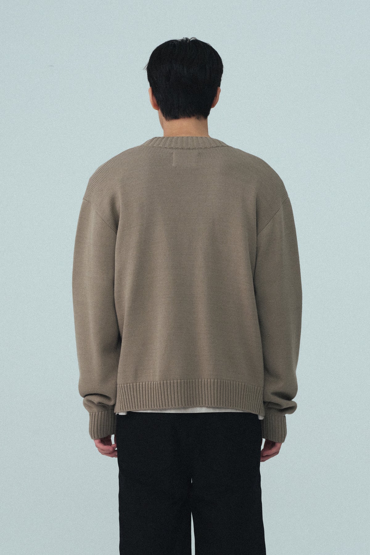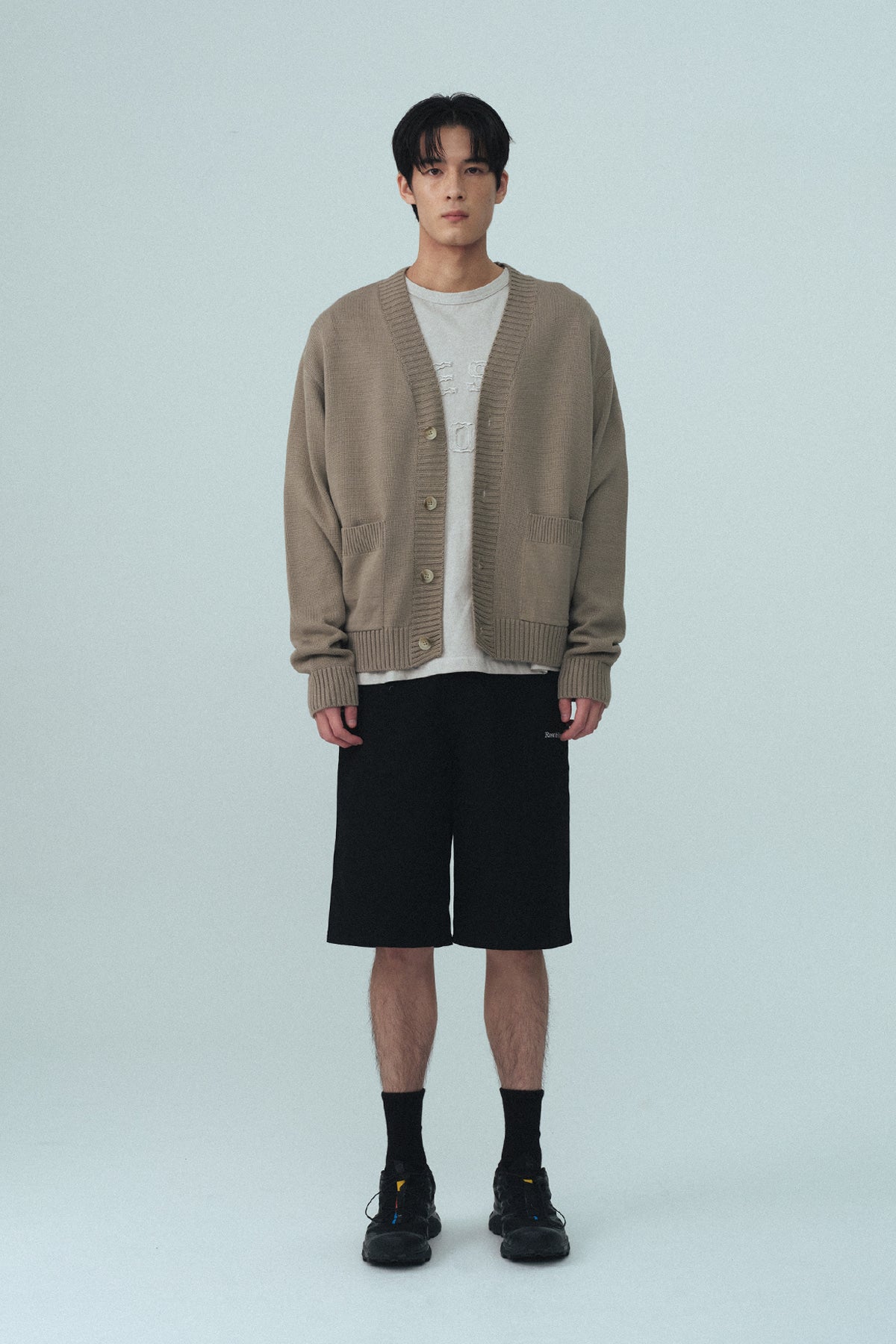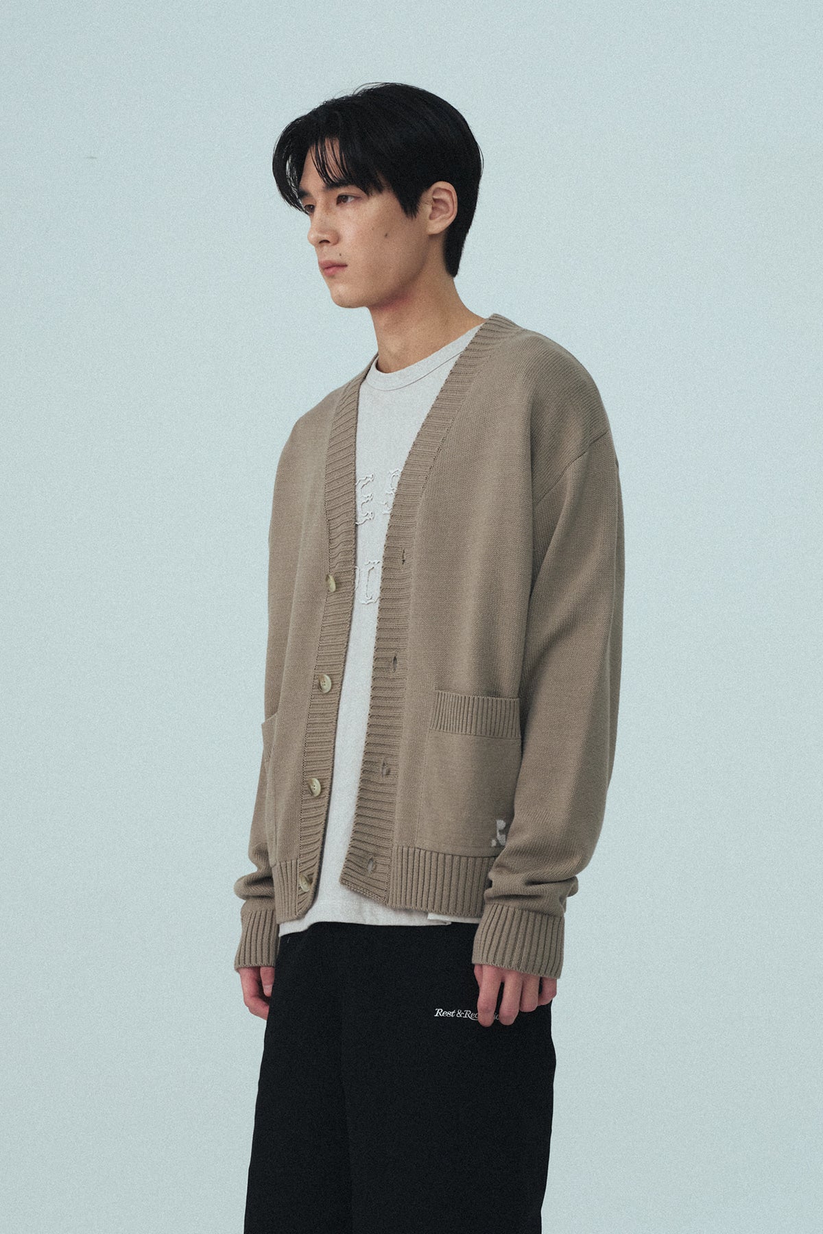 V-NECK KNIT CARDIGAN - KHAKI BEIGE