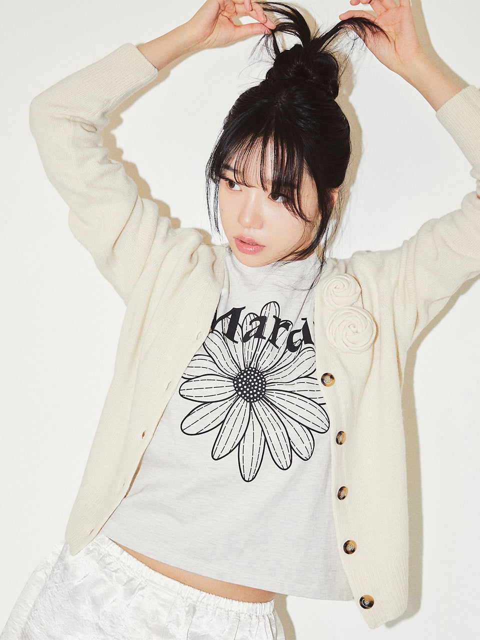 Add RONRON HANDMADE FLOWER SCOTCH KNIT CARDIGAN BUTTER to the cart