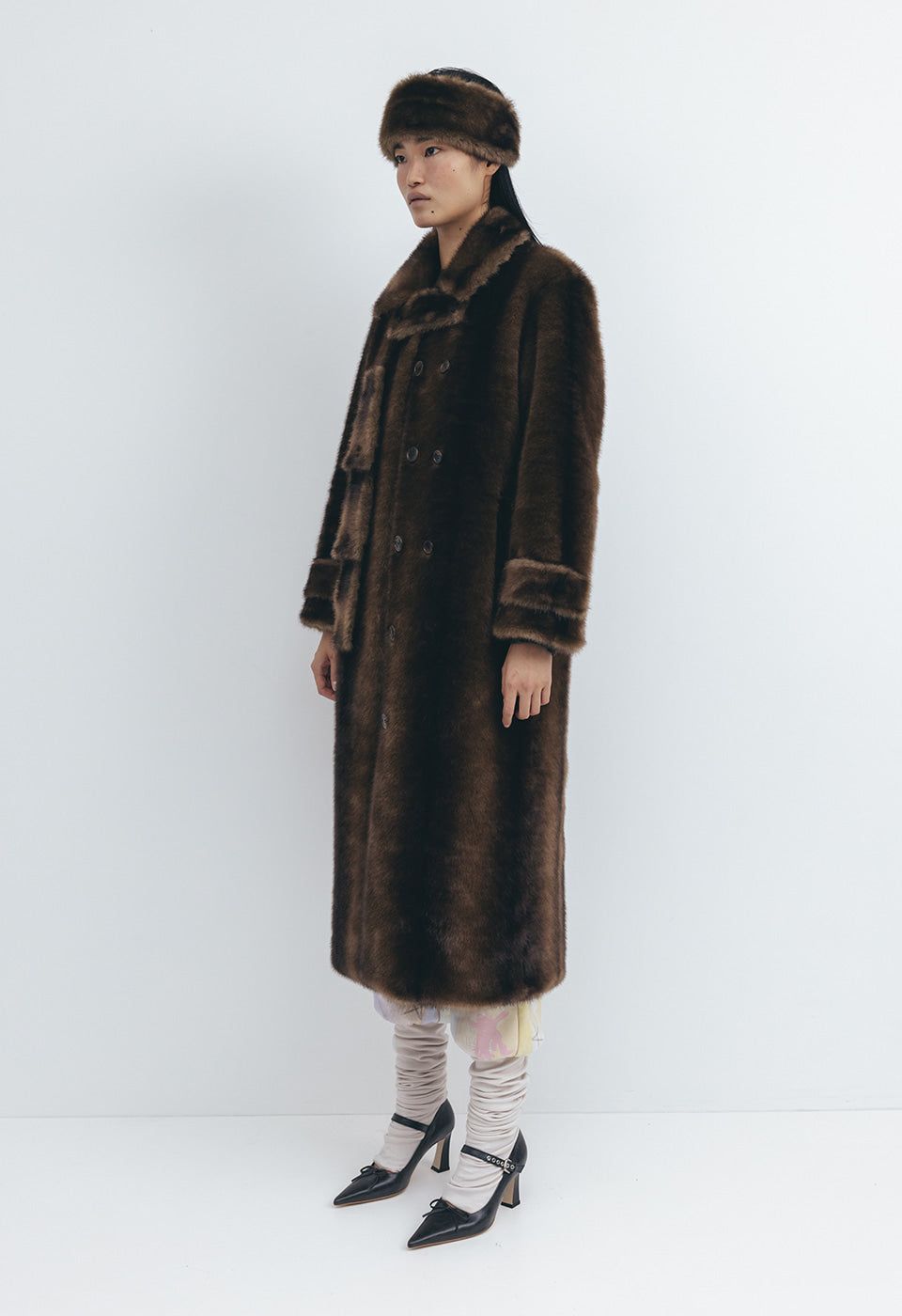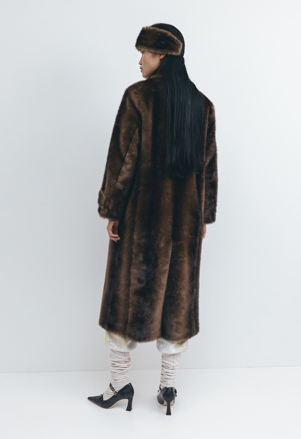 OPEN YY FAUX FUR TAB TOGGLE COAT, BROWN