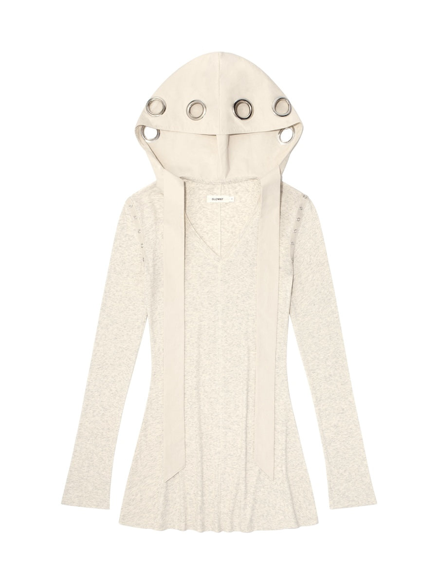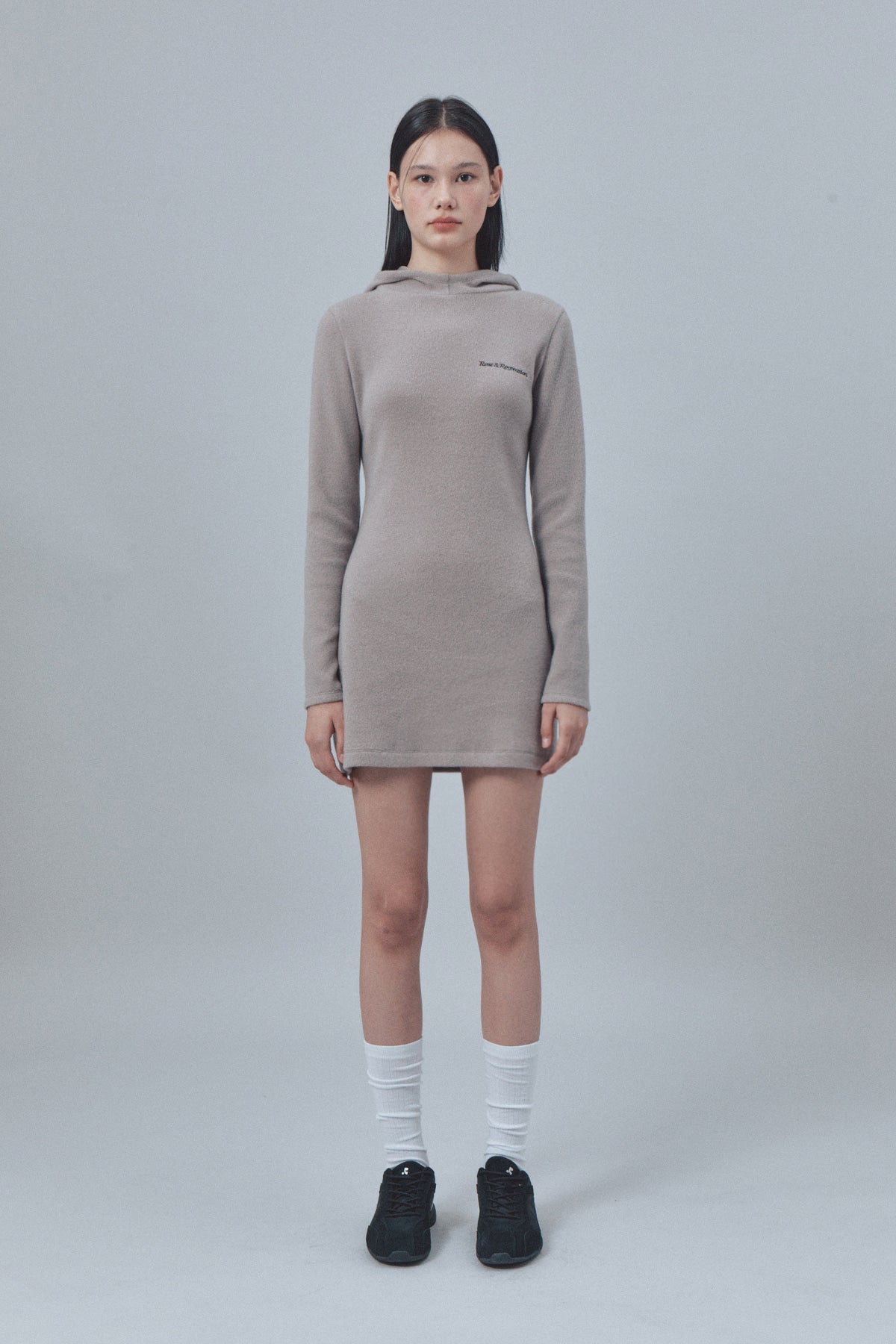 Add HAIRY HOOD KNIT DRESS - BEIGE to the cart