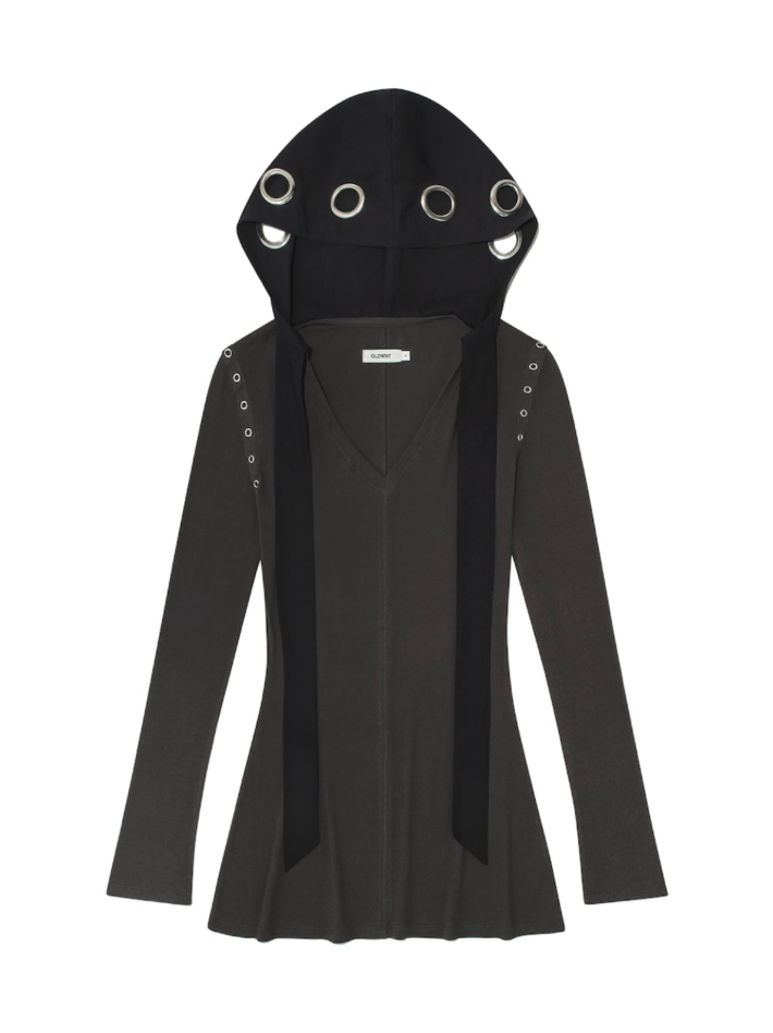 Add HAIRY HOOD KNIT DRESS - BLACK to the cart