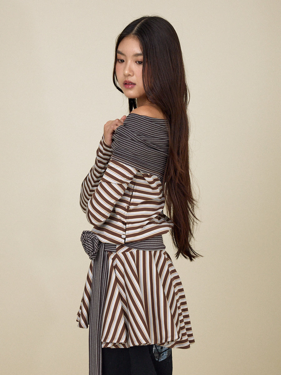 Add RONRON ROUND COLLAR FRILL KANGKANG SHIRT DRESS PINK STRIPE to the cart
