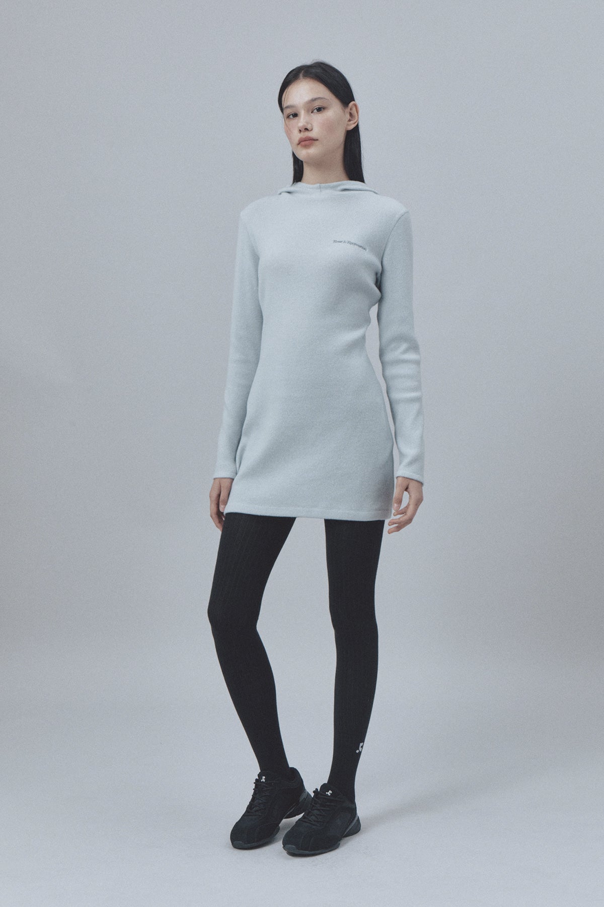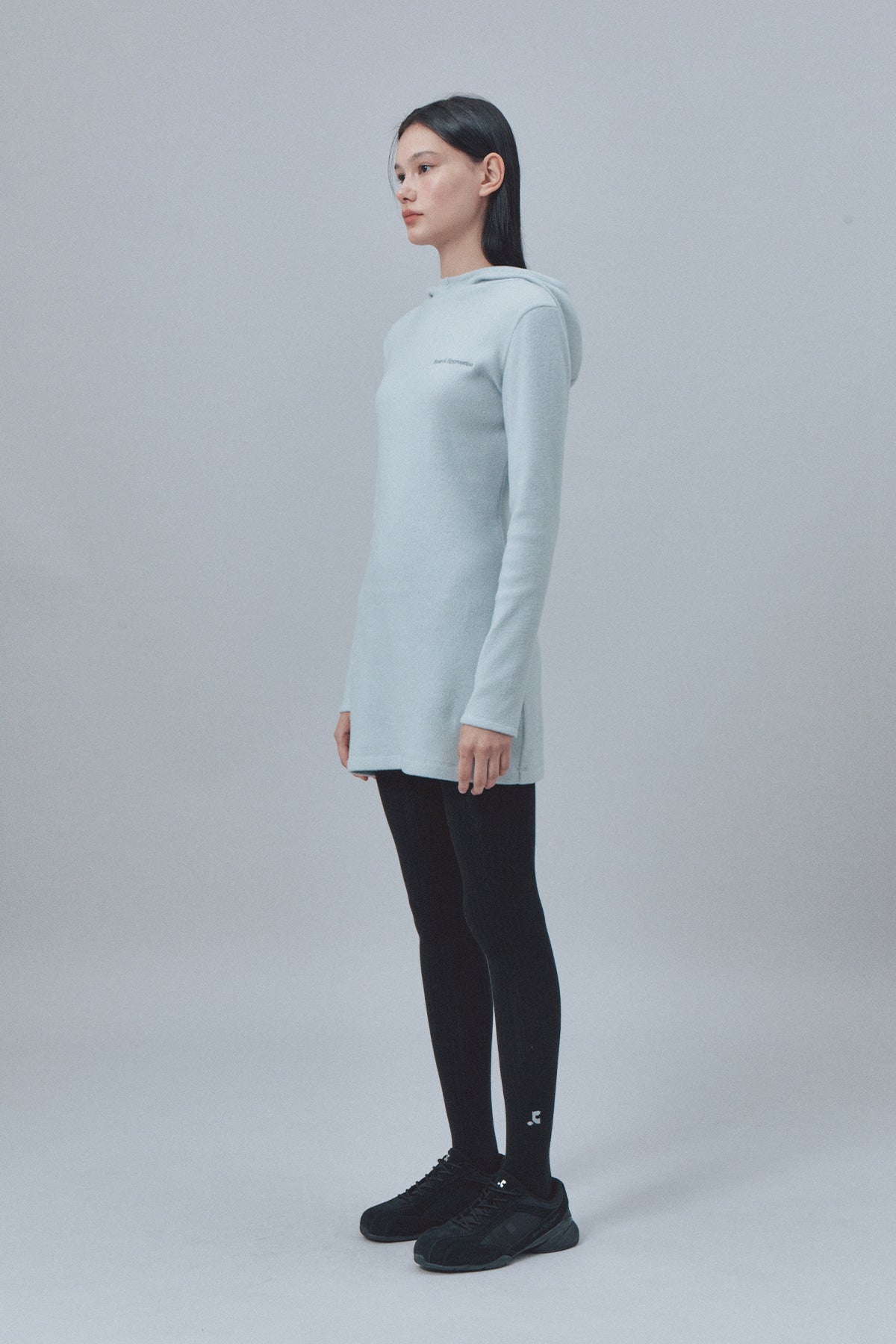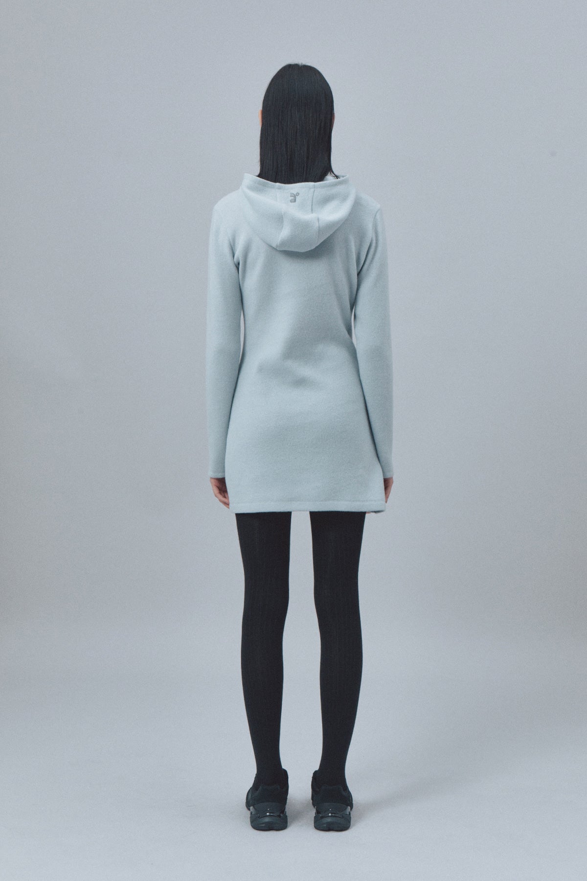 HAIRY HOOD KNIT DRESS - LIGHT BLUE