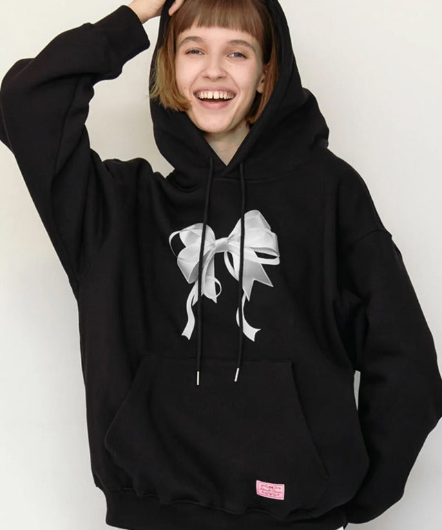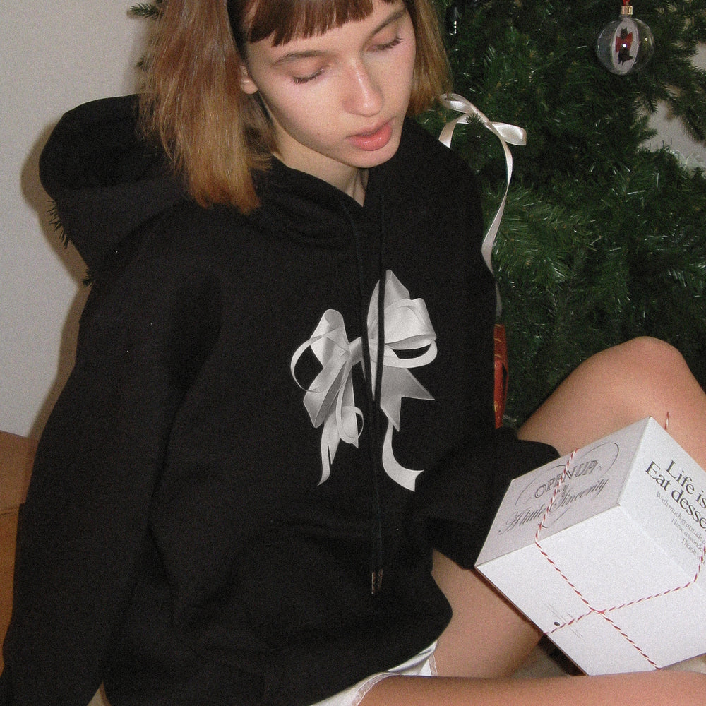 Add RONRON DOUBLE RIBBON OVERSIZED HOODIE BLACK SILVER to the cart