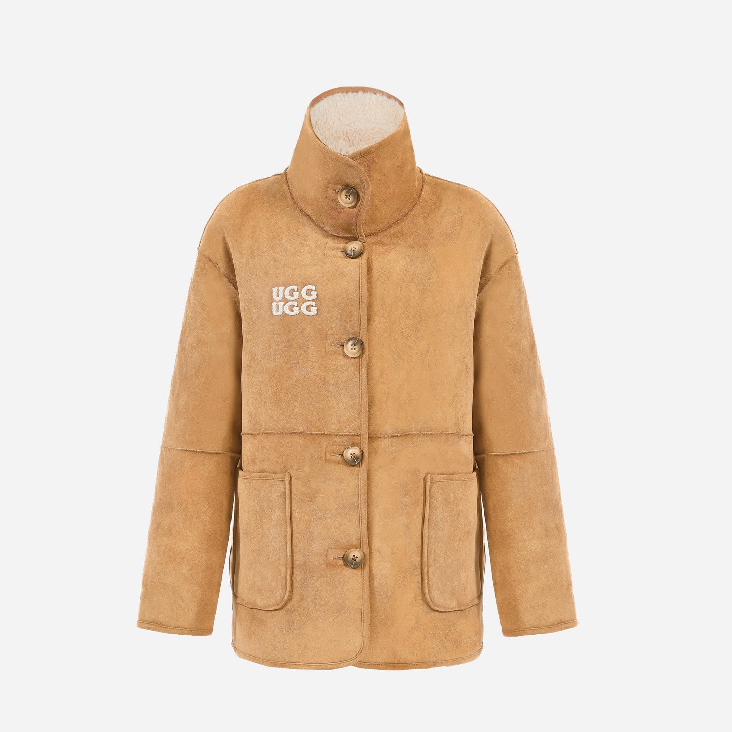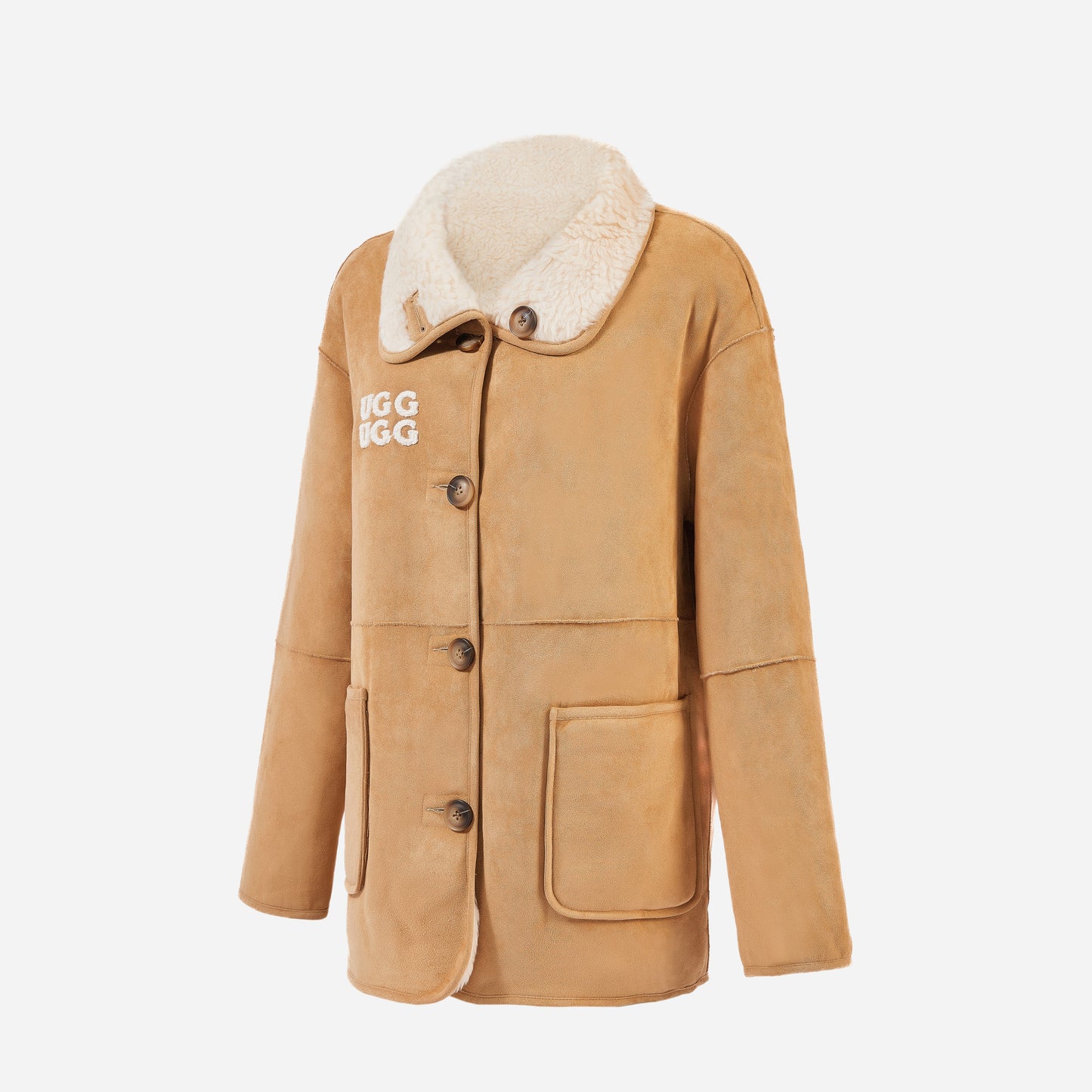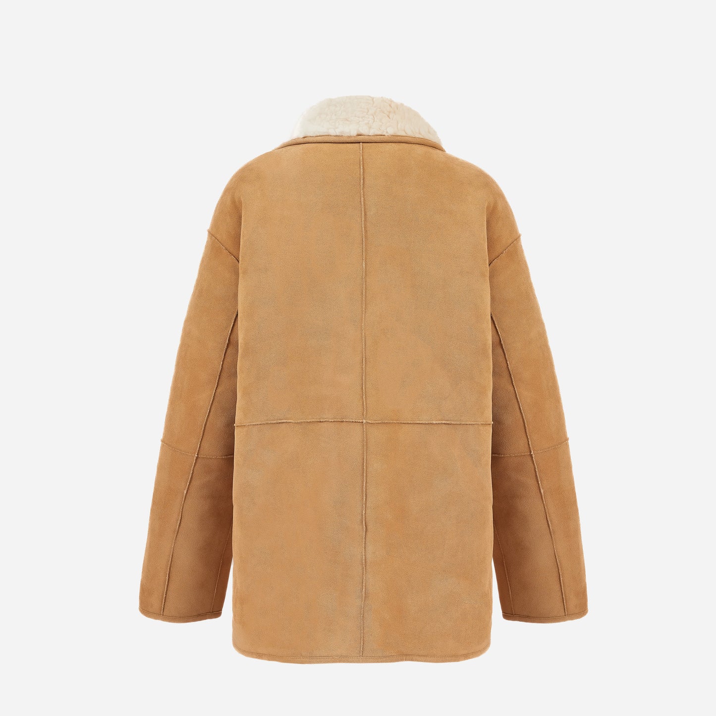 DOUBLE LOGO REVERSIBLE SHEARLING COAT - CHESTNUT