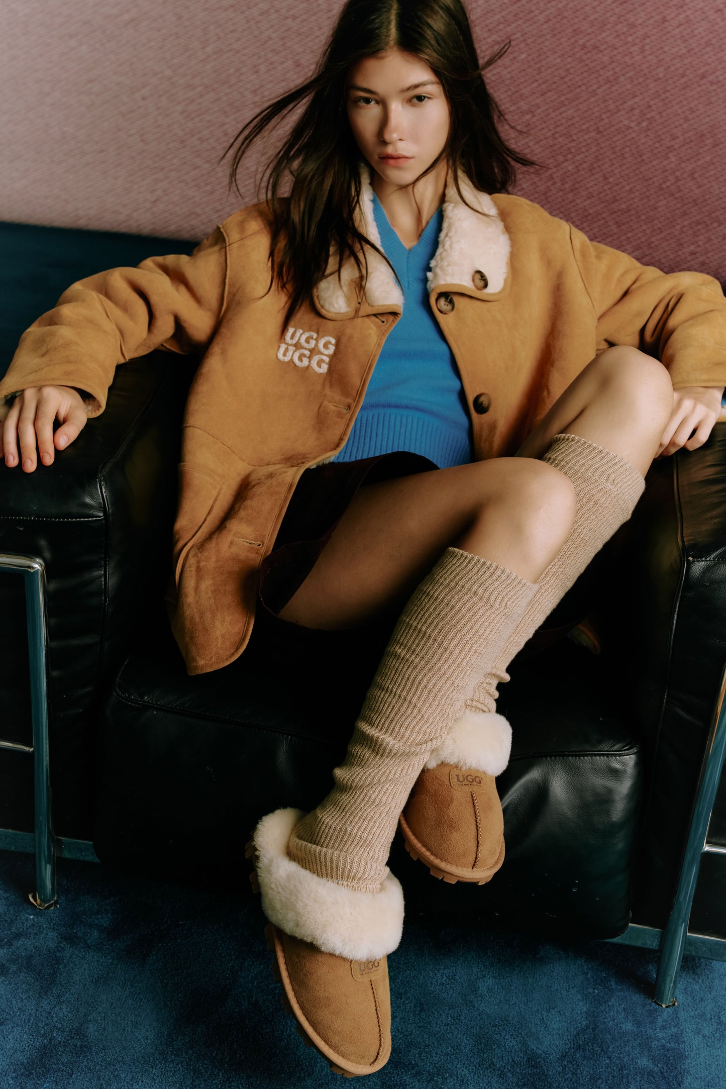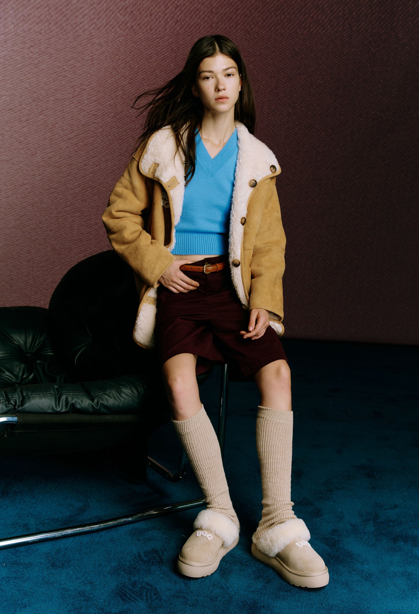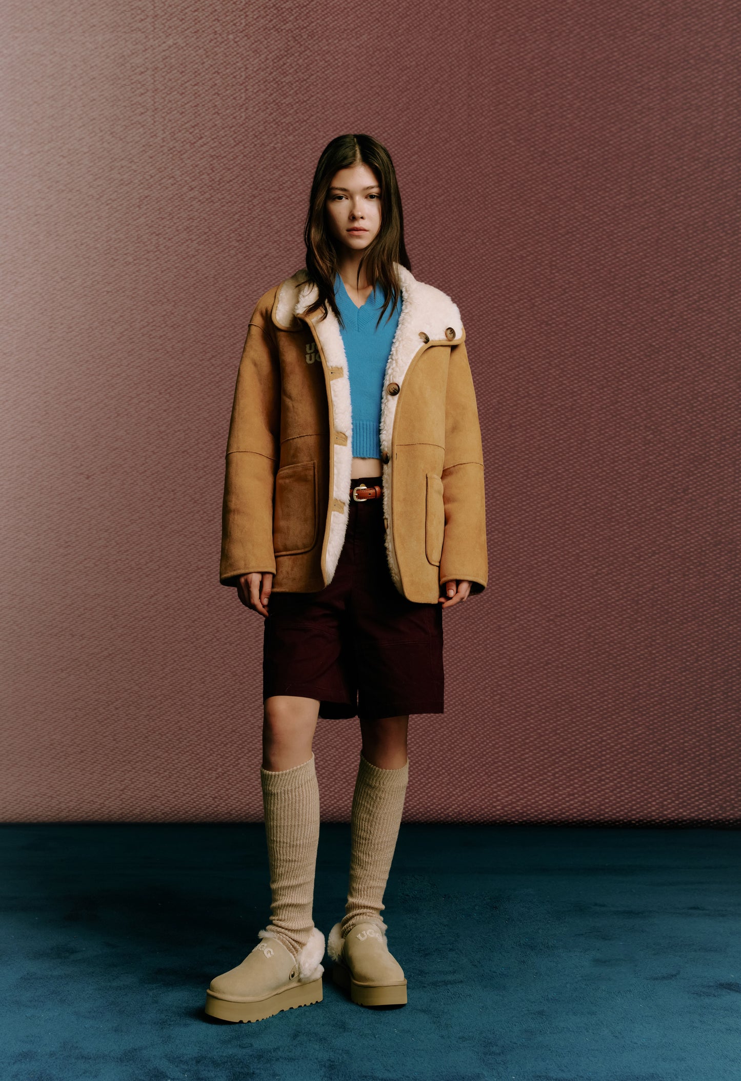 DOUBLE LOGO REVERSIBLE SHEARLING COAT - CHESTNUT