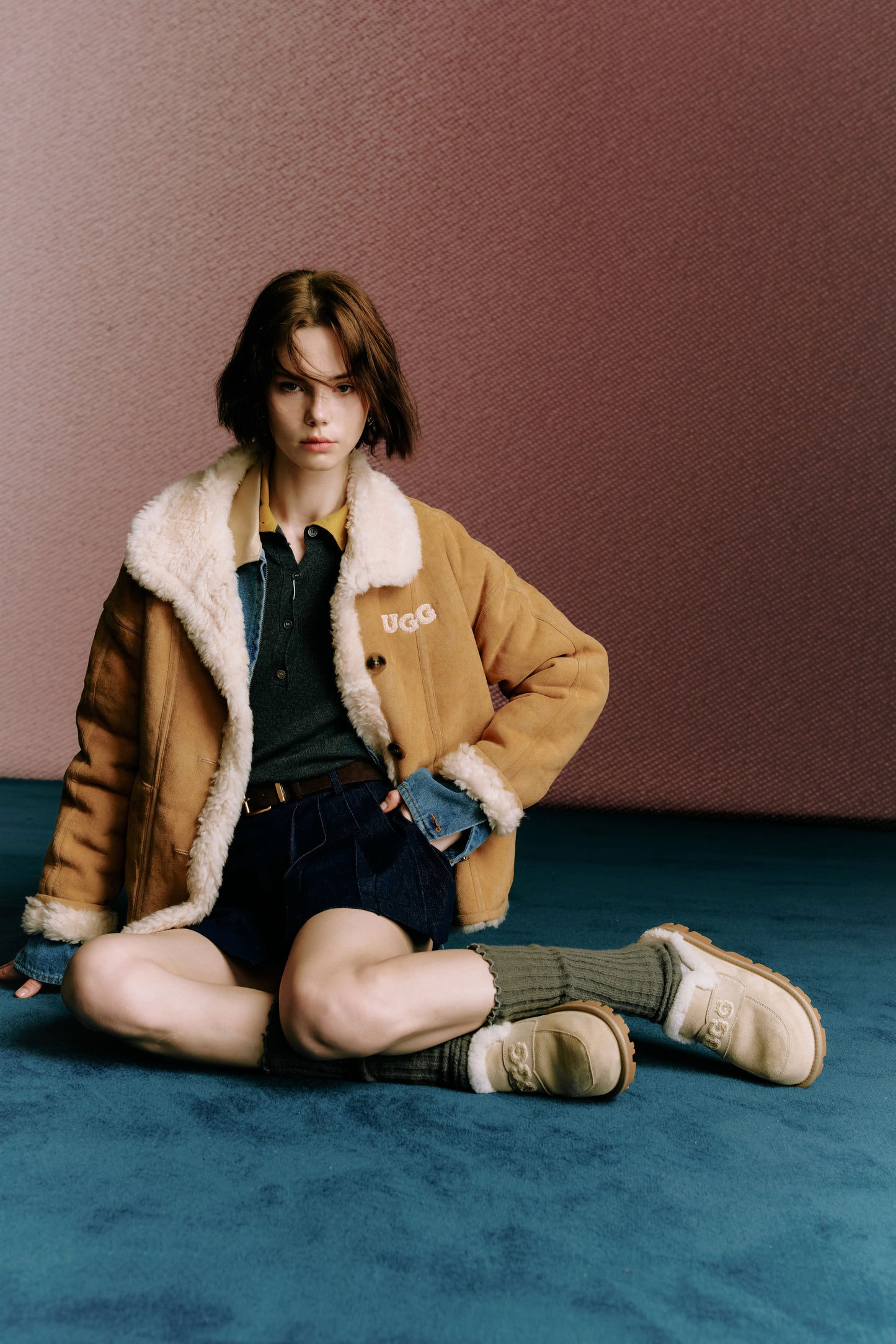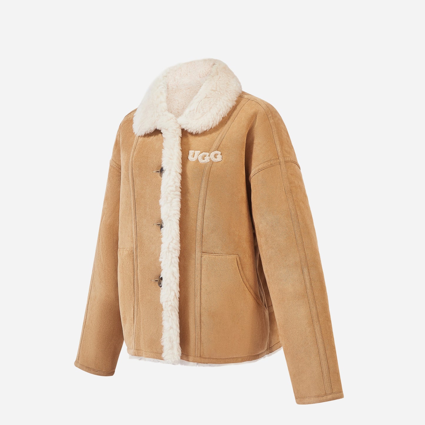 LOGO REVERSIBLE SHEARLING COAT - CHESTNUT