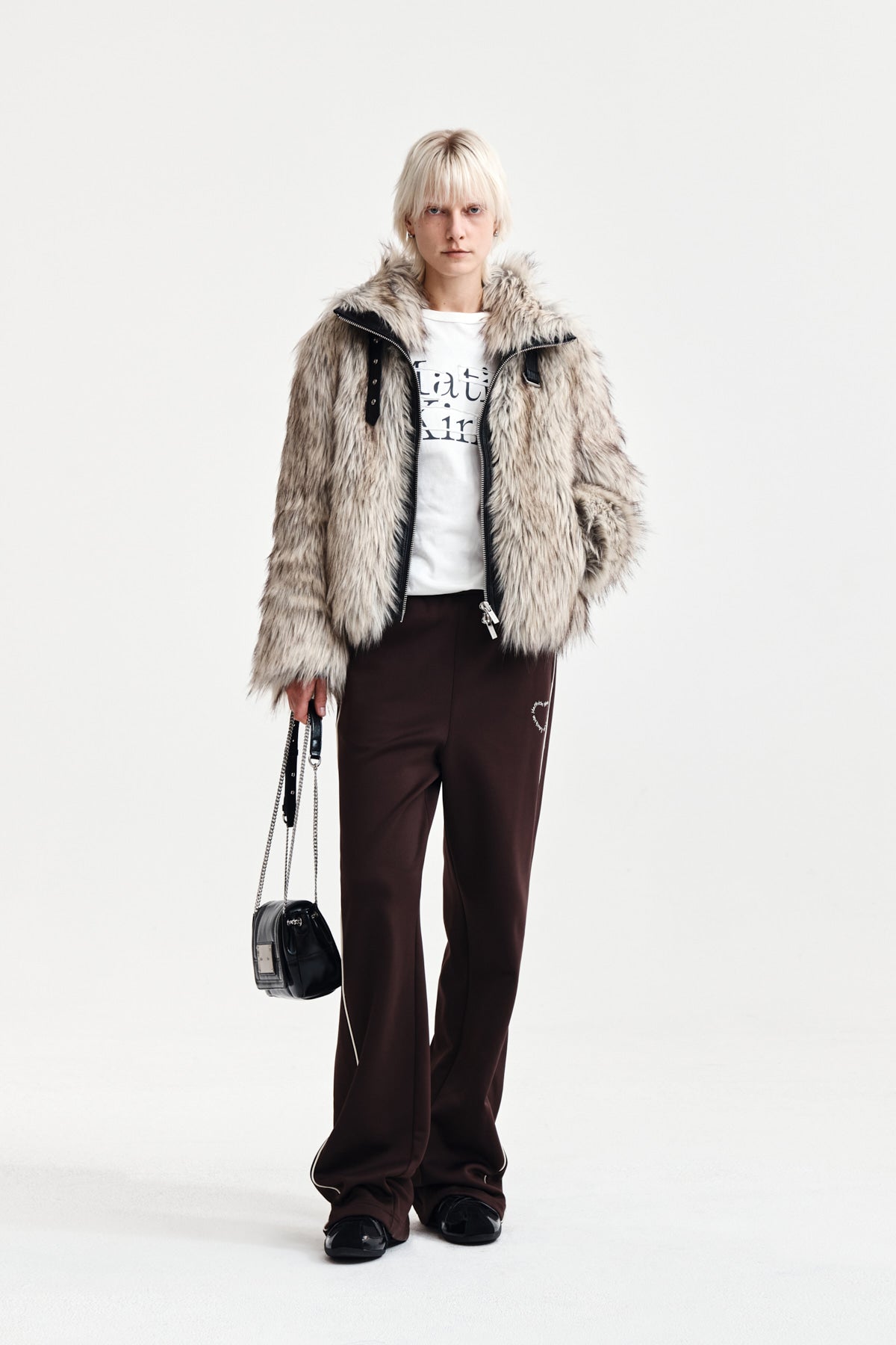 MATIN KIM NECK BUCKLE CROP FUR JUMPER IN IVORY