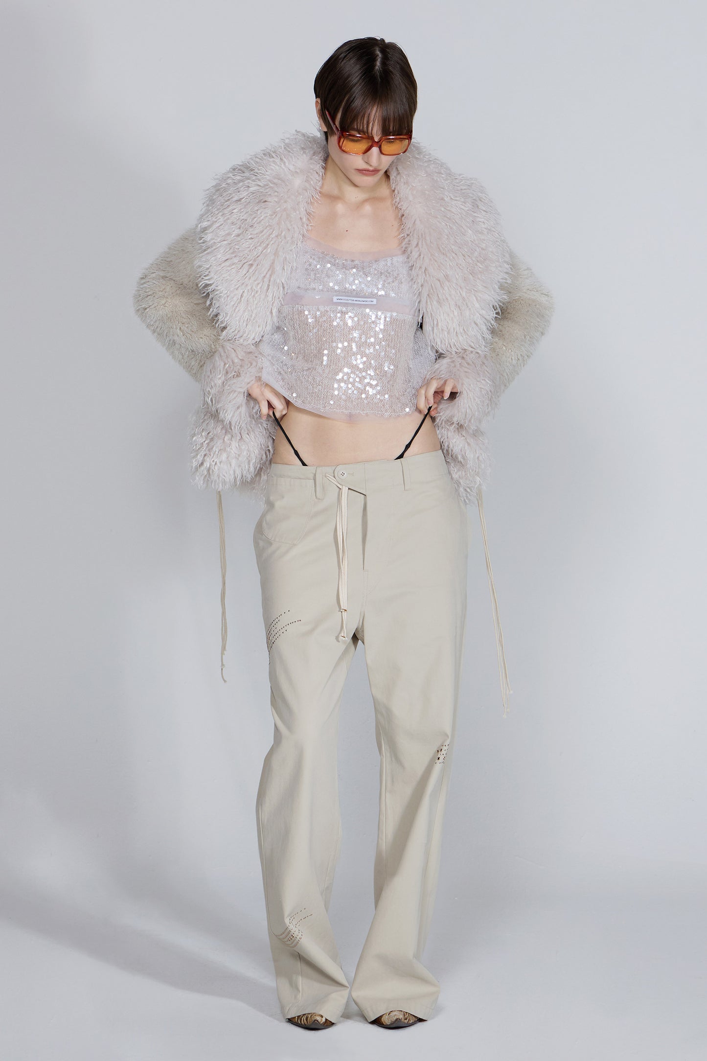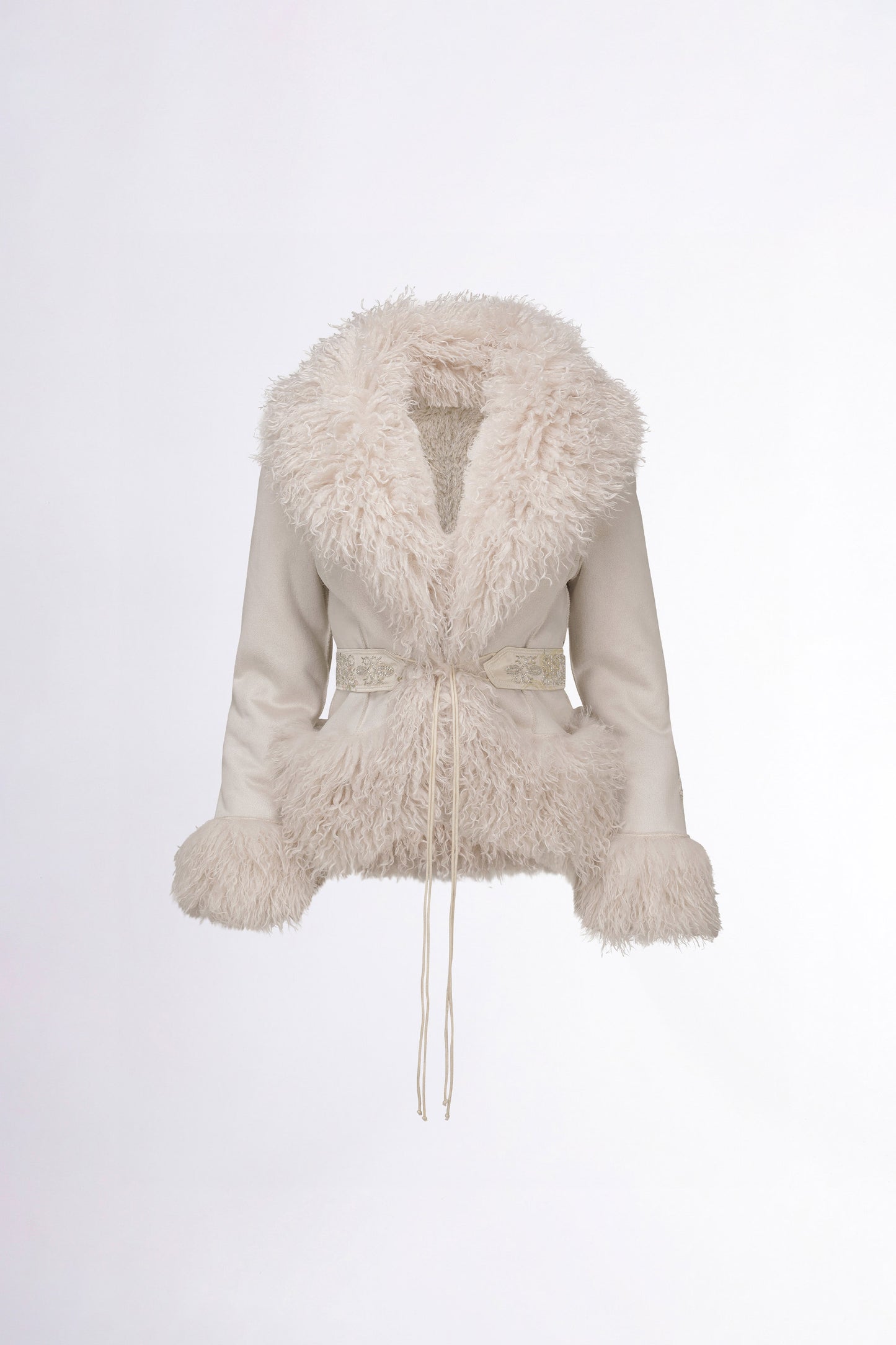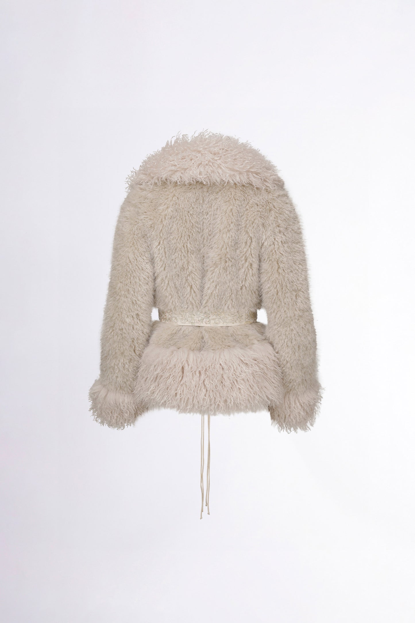 SCULPTOR Beaded Faux Fur Robe Dirty White
