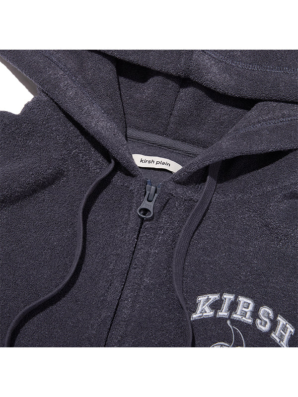 KIRSH ARCH CHERRY TERRY CROP ZIP-UP HOODIE DARK NAVY