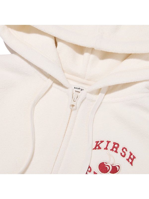 KIRSH ARCH CHERRY TERRY CROP ZIP-UP HOODIE IVORY