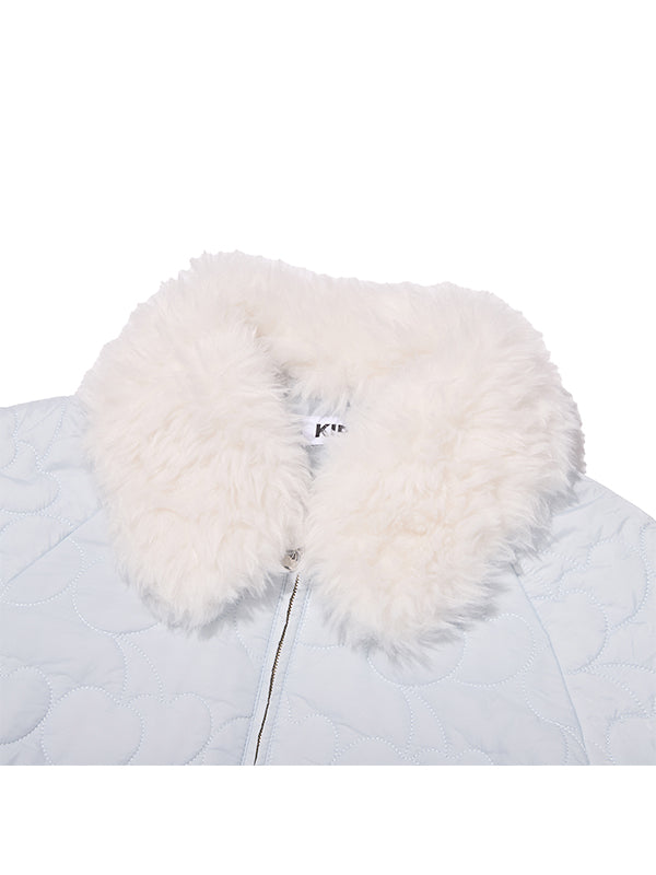 KIRSH CHERRY QUILTED FAUX FUR COLLAR JACKET LIGHT BLUE