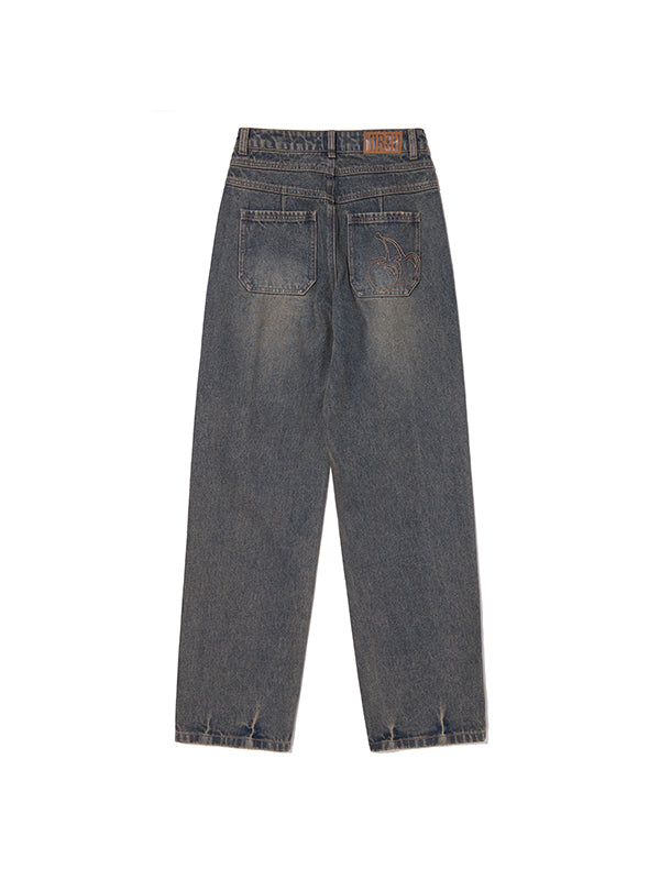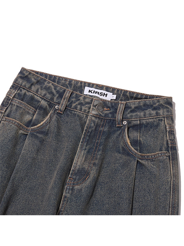 KIRSH WIDE-FIT PIN-TUCK FLEECE DENIM PANTS DARK BLUE