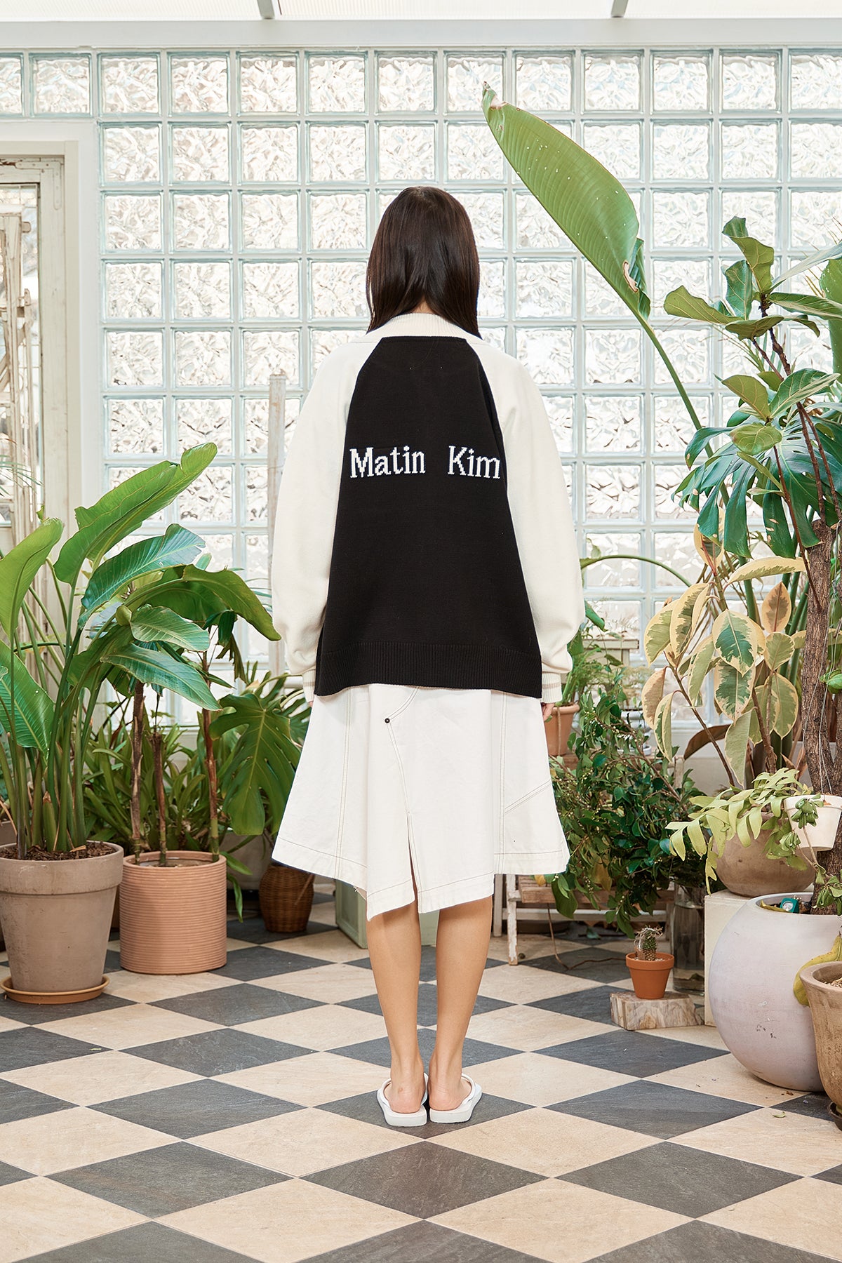 MATIN KIM BACK LOGO RAGLAN KNIT ZIP UP IN BLACK