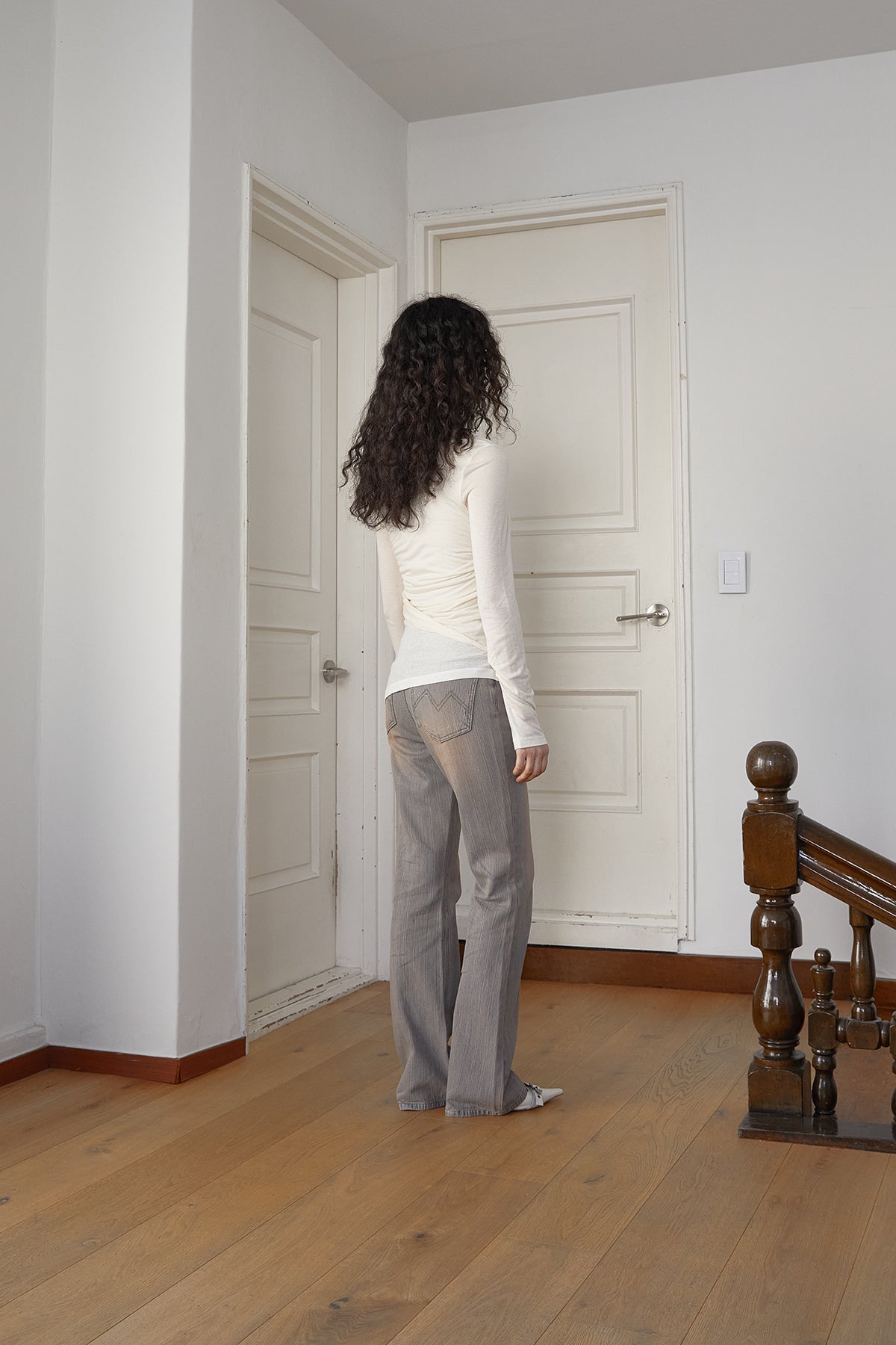 MATIN KIM TURN UP DETAIL LAYERED TOP IN LIGHT BEIGE