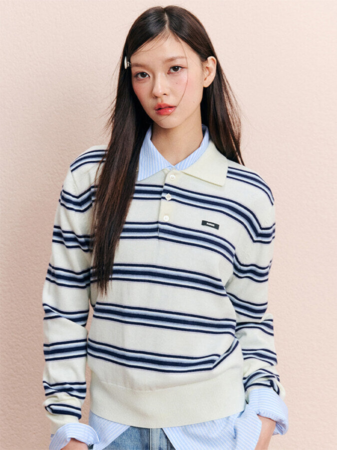 Add KIRSH Striped Collar Knit Top Ivory to the cart