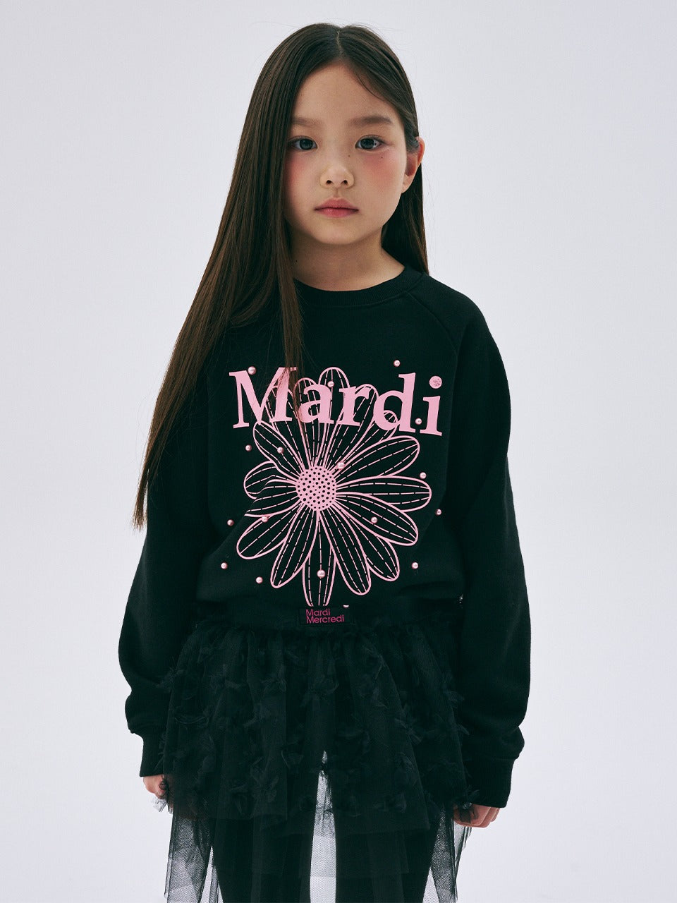 KIDS SWEATSHIRT FLOWERMARDI MIX PEARL EMBELLISHED_BLACK PINK