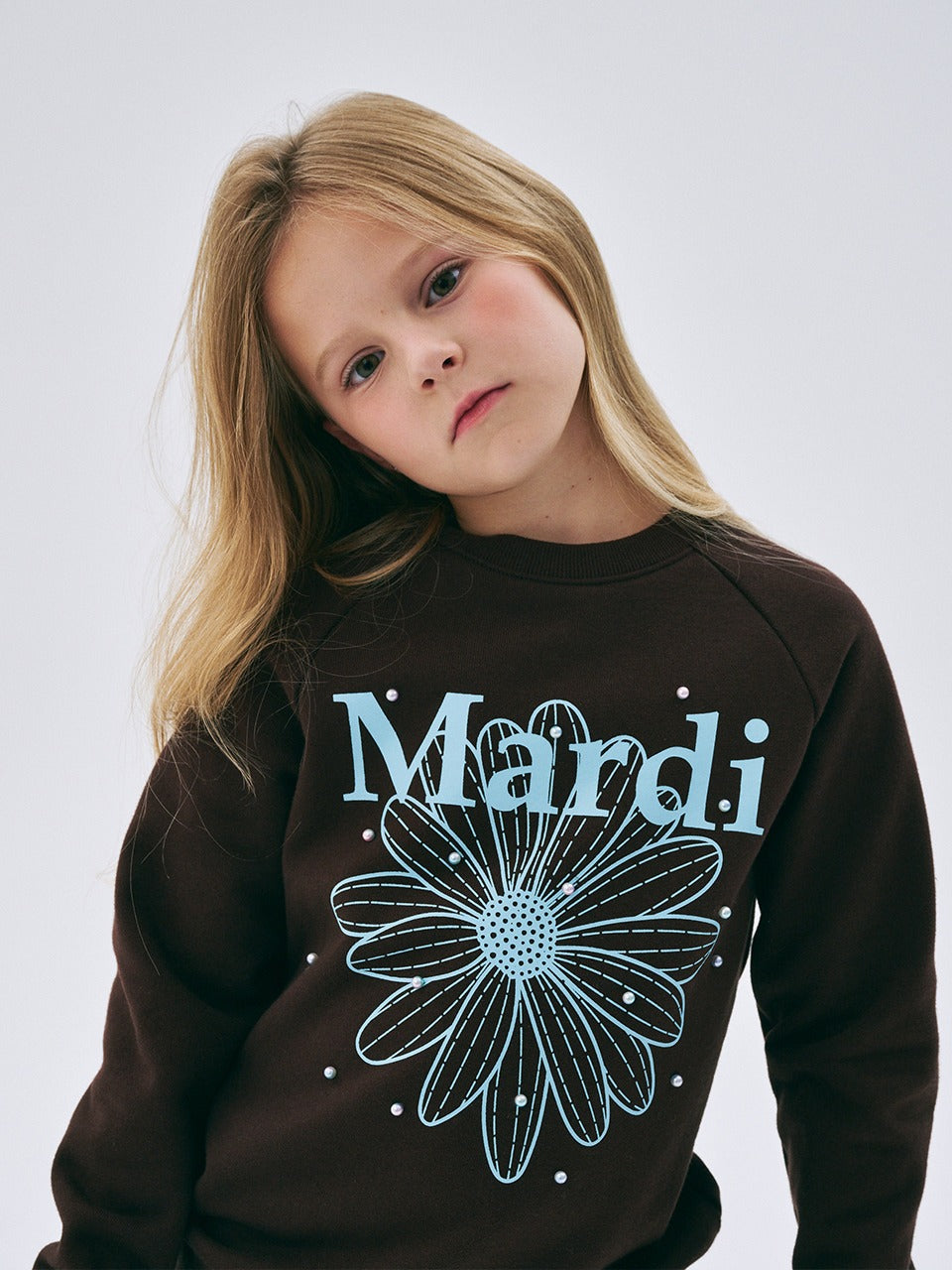 KIDS SWEATSHIRT FLOWERMARDI MIX PEARL EMBELLISHED_BROWN SKY