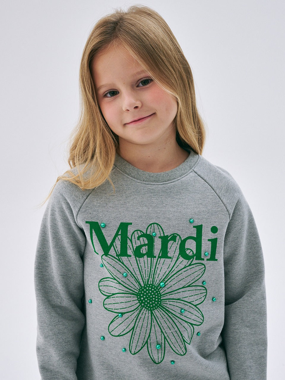 KIDS SWEATSHIRT FLOWERMARDI MIX PEARL EMBELLISHED_GREY GREEN