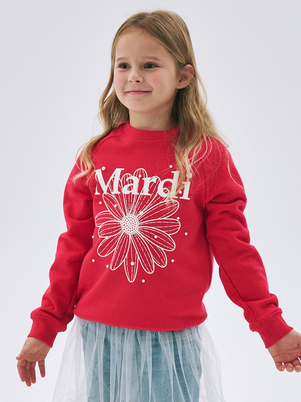 KIDS SWEATSHIRT FLOWERMARDI MIX PEARL EMBELLISHED_RED IVORY