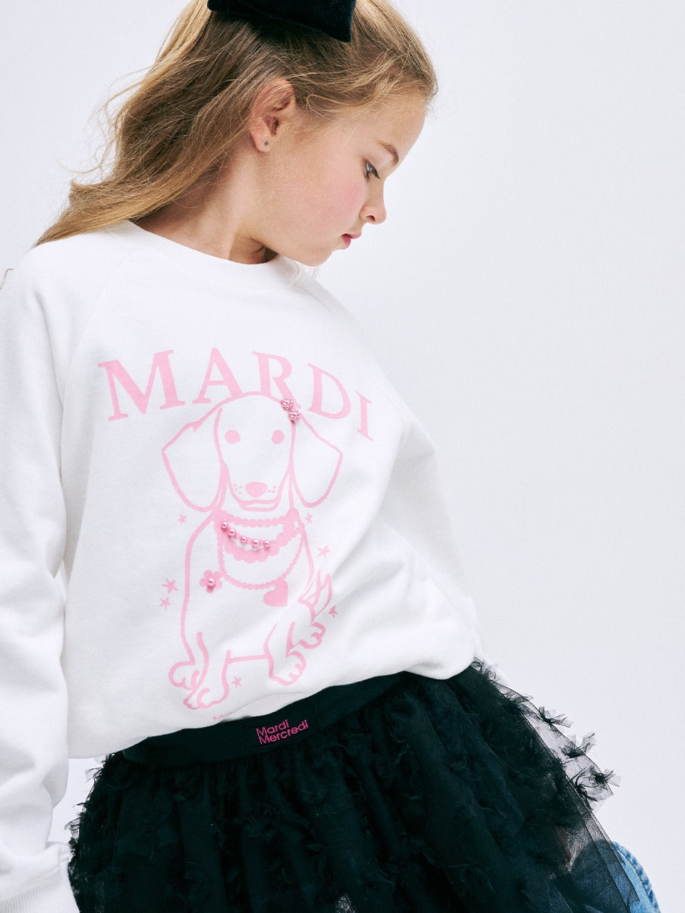 KIDS SWEATSHIRT PEARL NECKLACE SWING THE TAIL DDANJI PEARL EMBELLISHED_WHITE PINK
