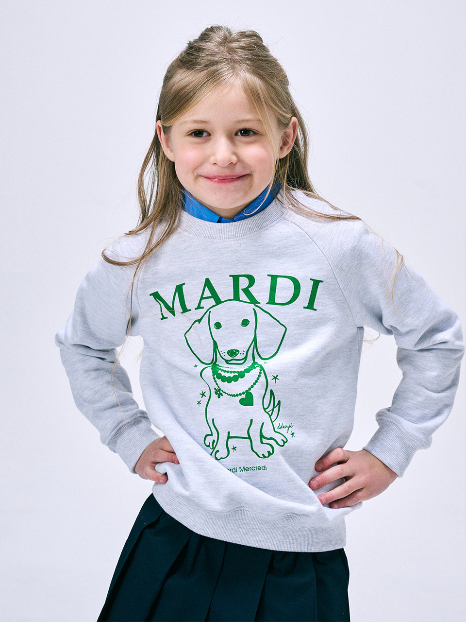 KIDS SWEATSHIRT PEARL NECKLACE SWING THE TAIL DDANJI_HEATHER GREEN