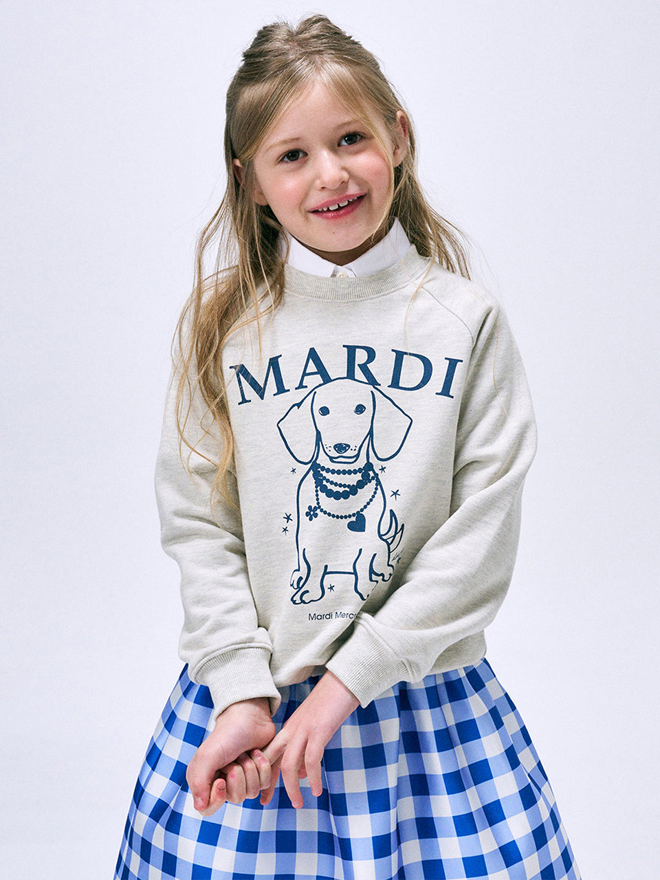 KIDS SWEATSHIRT PEARL NECKLACE SWING THE TAIL DDANJI_OATMEAL BLUE